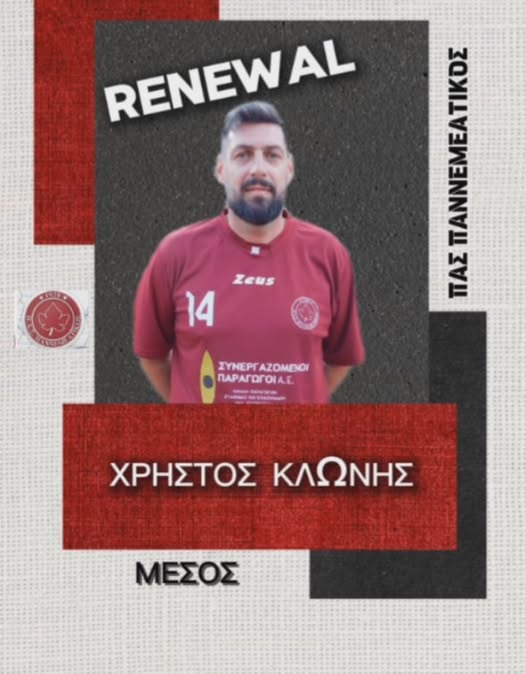 Ο ΠΑΣ Παννεμεατικός ανακοινώνει την ανανέωση της συνεργασίας του με τον ποδοσφαιριστή Χρήστο Κλωνή