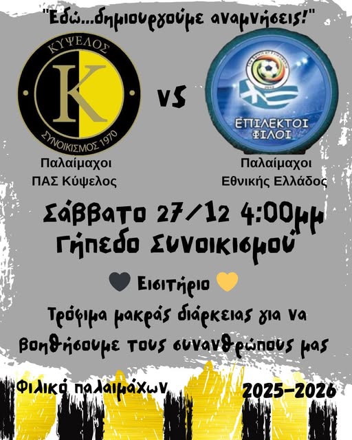 Ανακοίνωση Φιλικό παλαιμάχων: