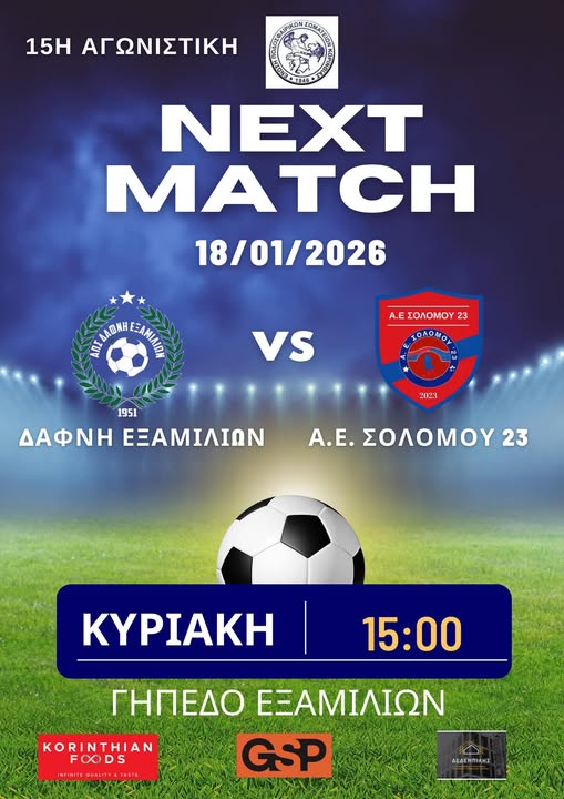 ΑΘΛΗΤΙΚΑ ΚΟΡΙΝΘΙΑ ΑΘΛΗΤΙΚΑ Δάφνη Εξαμιλίων vs Α.Ε. Σολομού 23 Καλούμε όλους τους φιλάθλους μας να έρθουν να στηρίξουν την προσπάθεια της ομάδας μας 14/01/2026 @ 12:16 Copied to clipboard Διαβάστε επίσης 14/01/2026 @ 13:11 Με επιτυχία ολοκληρώθηκε το 10ο New Year Volleyball Tournament! 14/01/2026 @ 12:57 Αρχαία Κόρινθος: Σε κλίμα ενότητας η κοπή της πρωτοχρονιάτικης βασιλόπιτας στο «Κονδύλειο» 14/01/2026 @ 12:20 Σήμερα τα εγκαίνια για το νέο ΚΑΠΗ του Χιλιομοδίου 13/01/2026 @ 17:11 Πρόσκληση του Σώματος Ελληνικού Οδηγισμού Τ.Τ. Ξυλοκάστρου 13/01/2026 @ 11:23 "Άπις" Ζευγολατιού: Λειτουργική Γυμναστική για αγόρια και κορίτσια 15η Αγωνιστική Πρωταθλήματος Β Κατηγορίας και η ομάδα μας αντιμετωπίζει εκτός έδρας την ομάδα της Δάφνης Εξαμιλίων. Καλούμε όλους τους φιλάθλους μας να έρθουν να στηρίξουν την προσπάθεια της ομάδας μας . Ροή ειδήσεων 14/01/2026 @ 13:11 Με επιτυχία ολοκληρώθηκε το 10ο New Year Volleyball Tournament! 14/01/2026 @ 12:57 Αρχαία Κόρινθος: Σε κλίμα ενότητας η κοπή της πρωτοχρονιάτικης βασιλόπιτας στο «Κονδύλειο» 14/01/2026 @ 12:20 Σήμερα τα εγκαίνια για το νέο ΚΑΠΗ του Χιλιομοδίου 14/01/2026 @ 12:16 Δάφνη Εξαμιλίων vs Α.Ε. Σολομού 23 13/01/2026 @ 17:11 Πρόσκληση του Σώματος Ελληνικού Οδηγισμού Τ.Τ. Ξυλοκάστρου 13/01/2026 @ 17:04 Διαλύθηκαν μετά από 25 χρόνια οι Onirama 13/01/2026 @ 16:48 Οι αγρότες της Πελοποννήσου παραμένουν ενωμένοι. 13/01/2026 @ 16:17 Το Peloponnese Wine Festival επιστρέφει την Δευτέρα 19 Ιανουαρίου 13/01/2026 @ 14:46 Το Επιμελητήριο στην Εφημερίδα των Συντακτών: Σκάνδαλο ΟΠΕΚΕΠΕ στην Κόρινθο 13/01/2026 @ 12:37 Ανασχηματισμός στον Δήμο Κορινθίων: όταν οι αλλαγές φέρνουν στην επιφάνεια πρόσωπα και προθέσεις 13/01/2026 @ 11:51 Κυβέρνηση για αγρότες: «Να εφαρμοστεί ο νόμος για τα μπλόκα, χωρίς αστυνομία δεν γίνεται» 13/01/2026 @ 11:48 Λεπέν: Ξεκινά η εκδίκαση της έφεσης, που θα κρίνει το προεδρικό της μέλλον 13/01/2026 @ 11:23 "Άπις" Ζευγολατιού: Λειτουργική Γυμναστική για αγόρια και κορίτσια 13/01/2026 @ 10:48 Αυτή την Πέμπτη παρουσιάζονται τα εναλλακτικά σενάρια του Ειδικού Πολεοδομικού Σχεδίου για Κόρινθο, Άσσο-Λέχαιο και Τενέα 13/01/2026 @ 10:15 Από την Αρκαδία… στο CERN - Μια πρωτοβουλία του Επιμελητηρίου Αρκαδίας για την επιστήμη και την καινοτομία 13/01/2026 @ 10:09 Π. Τατούλης: «Έγκλημα εναντίον των ελαιοπαραγωγών ο διπλασιασμός των εξαγωγών ελαιολάδου χωρίς δασμούς από την Τυνησία στις Χώρες της Ε.Ε.» 12/01/2026 @ 18:24 Ταχύτατα σε εφαρμογή ο νόμος «Δίκαιη Εργασία για Όλους» 12/01/2026 @ 18:19 Ο «χάρτης» των πληρωμών από e-ΕΦΚΑ, ΔΥΠΑ για αυτή την περίοδο 12/01/2026 @ 18:08 Η Μαριλένα Σούκουλη-Βιλιάλη παρούσα σε εκδηλώσεις κοπής πίτας στην Κορινθία (ΦΩΤΟ) 12/01/2026 @ 17:55 Εκπαιδευτικοί Π. Ε Κορινθίας: Αλληλεγγύη στον λαό του Ιράν. Καμία ανοχή στη θεοκρατική καταπίεση και αυθαιρεσία Δείτε επίσης 12/01/2026 @ 12:50 Φοινικούντα: Πώς η AI «έκαψε» τον ανιψιό του ιδιοκτήτη του κάμπινγκ για τη διπλή δολοφονία 12/01/2026 @ 12:04 Mercosur: Ώρα να τελειώνουμε με τα παραμύθια. Η αλήθεια με αριθμούς και όχι με κραυγές 12/01/2026 @ 10:56 Με επιτυχία ολοκληρώθηκε το σεμινάριο Πρώτων Βοηθειών στον Άγιο Ιωάννη Κορινθίας(ΦΩΤΟ) 12/01/2026 @ 10:05 Ρομπίνα Αμινιάν: Η νέα Μαχσά Αμινί του Ιράν - Την πυροβόλησαν στο κεφάλι, δεν επέτρεψαν την ταφή της 12/01/2026 @ 09:48 Γ'Εθνική: Μία νίκη και δύο ήττες για τις ομάδες της Κορινθίας 12/01/2026 @ 09:27 Σχόλιο στρατηγού ε.α. Βαγγέλη Πιπέρη για τον χαμό των δύο νέων στα Εξαμίλια Κορινθίας 10/01/2026 @ 11:04 Τι σημαίνει η συμφωνία ΕΕ - Mercosur για τα ελληνικά αγροδιατροφικά προϊόντα 09/01/2026 @ 12:46 Ο Γρηγόρης Δημητριάδης συναντήθηκε με μέλη της ΟΝΝΕΔ και της ΔΑΠ - ΝΔΦΚ