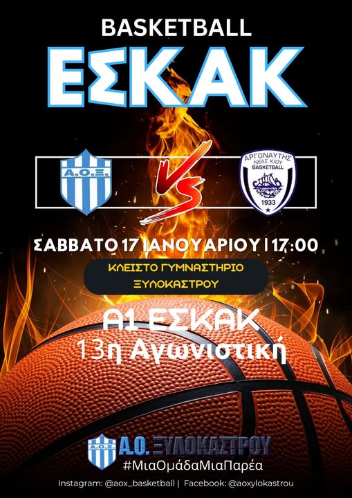 Η Ανδρική μας ομάδα αγωνίζεται για την 13η Αγωνιστική του Πρωταθλήματος Καλαθοσφαίρισης Α1 ΕΣΚΑΚ με την ομάδα του Αργοναύτη από την Νέα Κίο.