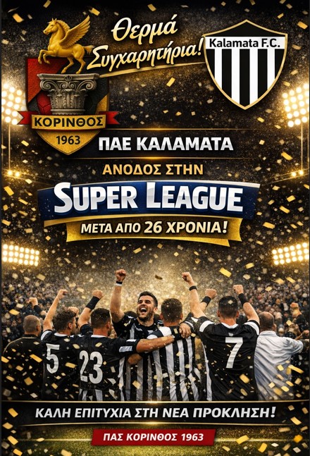 ΠΑΣ ΚΟΡΙΝΘΟΣ:Συγχαρητήρια σε Καλαμάτα για την άνοδο στην Σούπερ Λίγκα