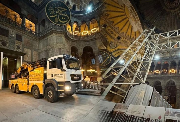 Την ίδια κατάπληξη ένιωσαν και πολλοί Τούρκοι επιστήμονες, αρχιτέκτονες, αρχαιολόγοι, ιστορικοί οι οποίοι είδαν από κοντά το εσωτερικό της Αγίας Σοφίας να μετατρέπεται σε εργοτάξιο ενός γενικού έργου. Τα εν λόγω μηχανήματα συμμετέχουν σε εργασίες προστασίας και επισκευής του φέροντα οργανισμού της Μεγάλης Εκκλησίας, με ιδιαίτερη έμφαση στην ενίσχυση της ικανότητας του δομήματος να αναλαμβάνει επιτυχώς σεισμικές φορτίσεις.