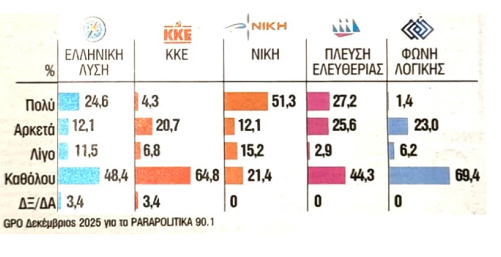 Η εφημερίδα τα ΝΕΑ παρουσιάζει μία ανάλυση από δημοσκόπηση της GPO για τα Παραπολιτικά FM τον Δεκέμβριο που αποτυπώνει τις δεξαμενές από τις οποίες αντλεί ψηφοφόρους το κόμμα Καρυστιανού.