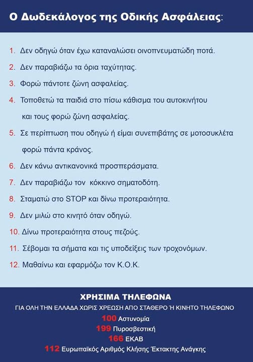 ΕΠΙΚΑΙΡΟΤΗΤΑ ΕΛΛΑΔΑ ΑΣΤΥΝΟΜΙΑ ΣΥΜΒΟΥΛΕΣ ΕΠΙΣΤΡΟΦΗ ΕΚΔΡΟΜΕΩΝ Συμβουλές της ΕΛ.ΑΣ. ενόψει της επιστροφής των εκδρομέων 13/04/2026 @ 17:43 Copied to clipboard Διαβάστε επίσης 09/04/2026 @ 18:44 Στοχευμένες αστυνομικές επιχειρήσεις πραγματοποιήθηκαν στην Κορινθία στην Αργολίδα και στη Λακωνία 05/04/2026 @ 14:37 Μεγαλοπρεπής Εορτασμός για τα 200 Χρόνια από την Ηρωική Έξοδο του Μεσολογγίου 04/04/2026 @ 14:50 Σε απεργιακή κινητοποίηση θα προχωρήσουν οι εργαζόμενοι σε παιδικούς σταθμούς, ΚΔΑΠ και κοινωνικές δομές των δήμων 31/03/2026 @ 13:10 Σε Κατάσταση Κινητοποίησης (Red Code) η Πελοπόννησος με Υψηλό Κίνδυνο Πλημμυρών (01-02 Απριλίου 2026) 31/03/2026 @ 09:37 Εκτοξεύθηκαν πέντε ακόμα ελληνικοί μικροδορυφόροι Λόγω της επικείμενης επιστροφής των εκδρομέων του Πάσχα, να έχουμε στο μυαλό μας τον Δωδεκάλογο της Οδικής Ασφάλειας, ώστε να επιστρέψουμε όλοι πίσω ασφαλείς! Ροή ειδήσεων 13/04/2026 @ 18:07 Εβδομαδιαίος απολογισμός δράσεων της Εκστρατείας «Μηδενική ανοχή στη μη χρήση κράνους» στην Περιφέρεια Πελοποννήσου 13/04/2026 @ 17:56 Κορινθία: Δρομολόγια των Κινητών Αστυνομικών Μονάδων για αυτή την εβδομάδα 13/04/2026 @ 17:43 Συμβουλές της ΕΛ.ΑΣ. ενόψει της επιστροφής των εκδρομέων 13/04/2026 @ 15:14 Συνελήφθη 44χρονος στο Ξυλόκαστρο για κλοπή μοτοσικλέτας από την Πάτρα 13/04/2026 @ 14:22 Η Γιορτή της Αγάπης στο Αγγελόκαστρο 13/04/2026 @ 14:12 «Έπηξε» η Αθηνών - Κορίνθου τη Μεγάλη Εβδομάδα! 12/04/2026 @ 17:50 Νεμέα: Η Φιλαρμονική συνόδευσε τους Επιταφίους των Ι.Ν. Υπαπαντής & Ευαγγελισμού της Θεοτόκου (ΦΩΤΟ) 12/04/2026 @ 13:43 Βέλος: Σαΐτα ακρωτηρίασε 19χρονο και τραυμάτισε σοβαρά 24χρονο το βράδυ της Αναστάσεως 11/04/2026 @ 18:44 Ο Επιτάφιος του Ιερού Ναού του Αγίου Δημητρίου στη Νεάπολη Κιάτου 11/04/2026 @ 16:39 Καλή Ανάσταση από το Photo Τέχνη 11/04/2026 @ 16:34 Ολοκληρώθηκε ο καθιερωμένος αγώνας του Συλλόγου νέων Βοχαϊκού 11/04/2026 @ 16:28 Πασχαλινές ευχές από τον Σωτήρη Κουφογιάννη 10/04/2026 @ 17:34 «Σπάσε τη Σιωπή»: Η αρχή μιας οργανωμένης προσπάθειας κατά της ψηφιακής κακοποίησης 10/04/2026 @ 17:19 Το SPORTCAMP υποδέχεται και φέτος το Loutraki Easter Volleyball Cup by G. Klaroudas 10/04/2026 @ 17:11 Πασχαλινές ευχές από το Sportcamp 10/04/2026 @ 17:09 Πασχαλινές ευχές από το Ypenema! 10/04/2026 @ 16:57 Η «ΘΕΟΠΡΟΣΦΟΡΑ» κοντά στον πάσχοντα αδελφό 10/04/2026 @ 16:40 Με απόλυτη επιτυχία ολοκληρώθηκαν τα Πασχαλινά Τουρνουά Loutraki Easter Soccer & Basketball Cup 10/04/2026 @ 13:59 Οι κροτίδες δεν είναι παιχνίδι! 10/04/2026 @ 12:57 Η Ακολουθία των Αχράντων Παθών στην Ι. Μητρόπολη Κορίνθου Δείτε επίσης 08/04/2026 @ 10:41 Πώς ο Μοτζτάμπα Χαμενεΐ κατέληξε σε εκεχειρία με τον Τραμπ 07/04/2026 @ 11:18 Διεθνής αγώνας σκοποβολής στην Κόρινθο 22-26 Απριλίου 07/04/2026 @ 10:53 Σοβαρή δυσλειτουργία της Παιδιατρικής Κλινικής στο Γενικό Νοσοκομείο Κορίνθου – Άμεση ανάγκη ενίσχυσης 03/04/2026 @ 13:00 Ανασχηματισμός 2026: Σχοινάς, Λαζαρίδης στο Αγροτικής Ανάπτυξης, Τουρνάς στο Πολιτικής Προστασίας, εκτός οι υπουργοί που είναι στις δικογραφίες του ΟΠΕΚΕΠΕ 03/04/2026 @ 12:47 Το νέο φρικιαστικό εργατικό «ατύχημα» που σημειώθηκε στο Κιάτο, όπου εργαζόμενη τραυματίστηκε σοβαρά, προκαλεί μόνο οργή! 03/04/2026 @ 12:37 Το Εργατικό Κέντρο Κορίνθου για το εργατικό ατύχημα στο Κιάτο 03/04/2026 @ 10:30 Fuel Pass: Ξεκινούν Μεγάλη Δευτέρα οι αιτήσεις – Πότε θα πιστωθούν τα χρήματα 03/04/2026 @ 10:02 To αρχαίο στάδιο Νεμέας στην Αρχαία Νεμέα
