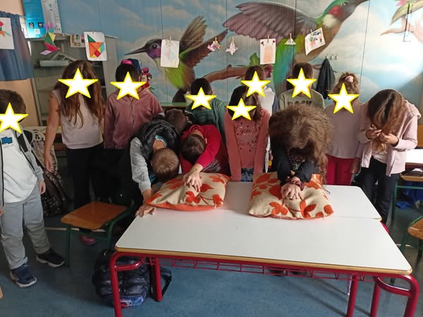 Η εξάσκηση έγινε σε αυτοσχέδια προπλάσματα ( μπλούζες γεμισμένες με υφάσματα ή χαρτιά και άδειο μπουκάλι νερού στη θέση του στέρνου ή κουκλάκια). Τα παιδιά μας μπορούν πια να υποστηρίξουν έναν άνθρωπο που κινδυνεύει μέχρι να φτάσει στο σημείο απινιδωτής. Μόνο περηφάνια!