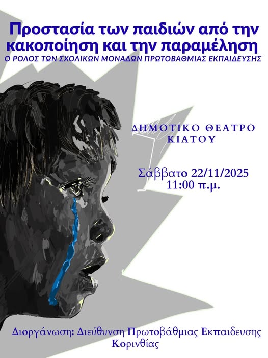 Σήμερα, στις 11:00, ΘΑ ΣΥΖΗΤΗΘΕΙ ΤΟ ΘΕΜΑ ΤΗΣ ΠΑΙΔΙΚΗΣ ΚΑΚΟΠΟΙΗΣΗΣ ΑΠΟ ΤΗΝ ΠΡΩΤΟΒΑΘΜΙΑ ΕΚΠΑΙΔΕΥΣΗ ΚΟΡΙΝΘΙΑΣ— ένα θέμα που δεν μπορεί να περιμένει.