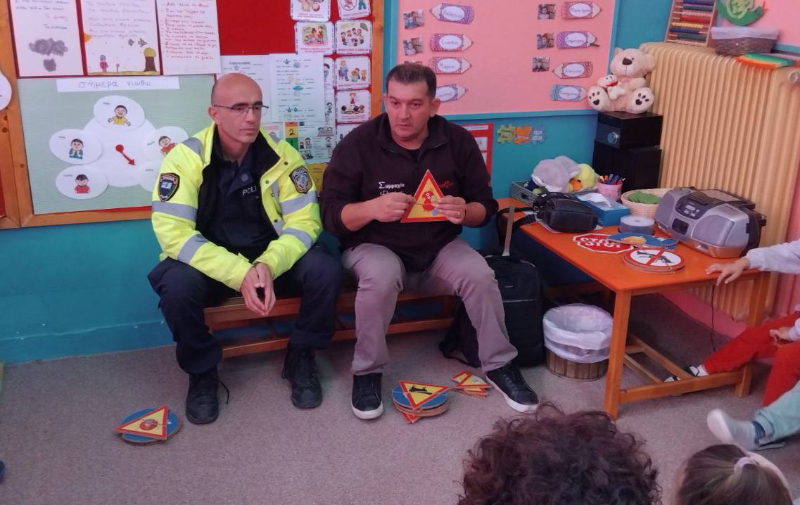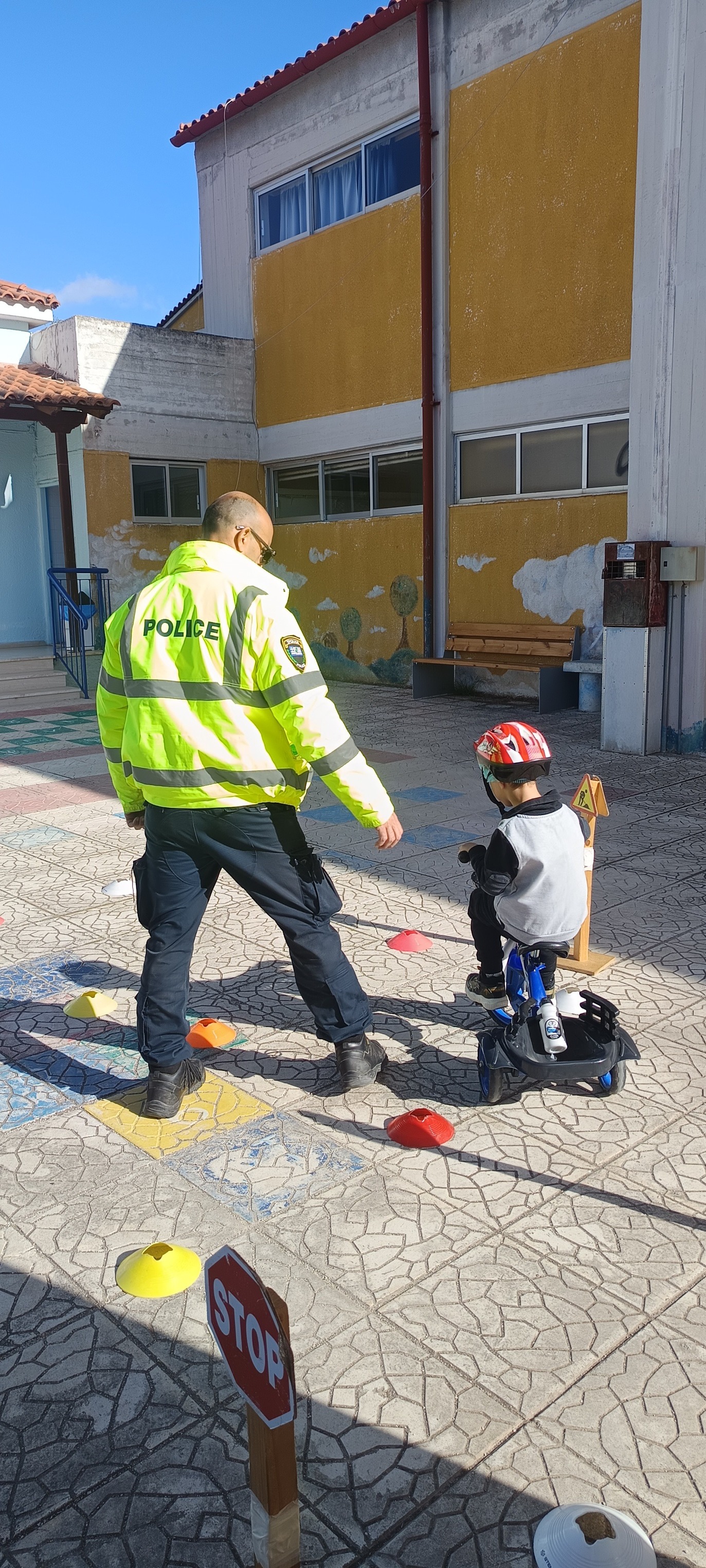 Ιδιαίτερα ξεχωριστή ήταν η συμμετοχή του Αρχιφύλακα κ. Αλεξάνδρου Βαμβακίδη, ο οποίος παρουσίασε στα παιδιά τον ρόλο της Ελληνικής Αστυνομίας στην οδική ασφάλεια, απαντώντας σε ερωτήσεις και δείχνοντας εξοπλισμό της υπηρεσίας.