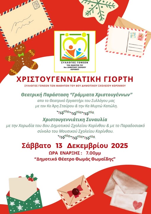 Χριστουγεννιάτικη γιορτή από το 8ο Δημοτικό Σχολείο Κορίνθου αυτό το Σάββατο