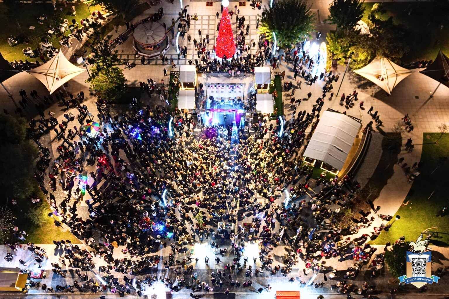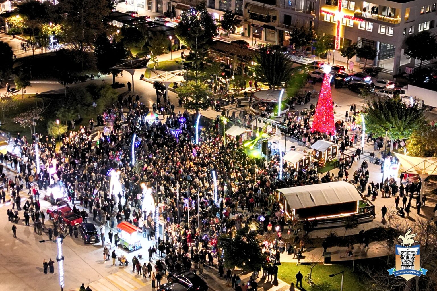 Η Κόρινθος φόρεσε τα γιορτινά της χθες το βράδυ, καθώς το «Άναμμα του Χριστουγεννιάτικου Δέντρου» στην κεντρική πλατεία μετατράπηκε σε μια πραγματική γιορτή για μικρούς και μεγάλους.