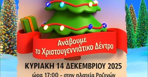 Ο Πολιτιστικός Σύλλογος Ροζενών Ευρωστίνης προσκαλεί μικρούς και μεγάλους σε μια γιορτή για τη φωταγώγηση του Χριστουγεννιάτικου Δέντρου, τη Κυριακή 14 Δεκεμβρίου 2025, στην Κεντρική Πλατεία Ροζενών, με ώρα έναρξης 17:00.