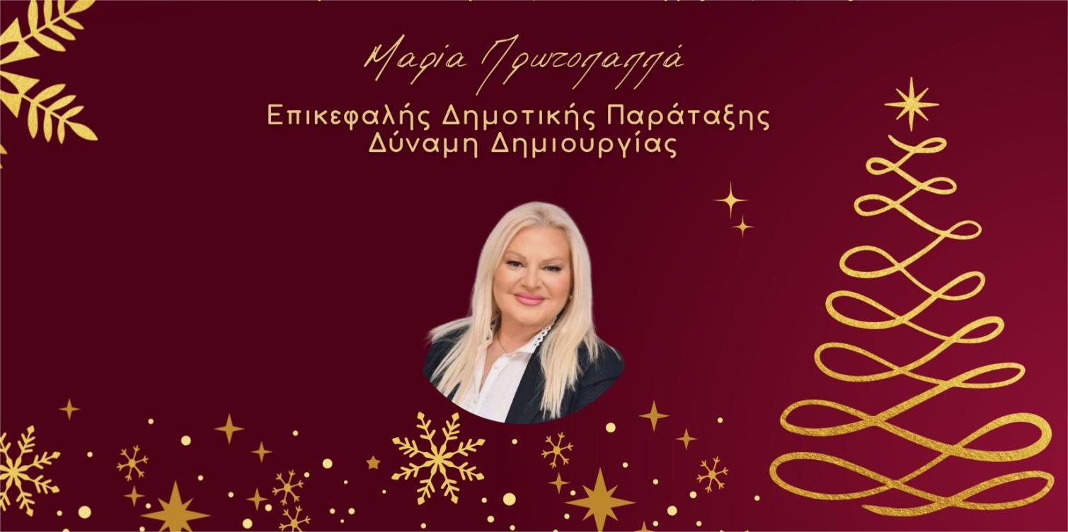 Η επικεφαλής της Δύναμης Δημιουργίας και επικεφαλής της αντιπολίτευσης του δήμου Λουτρακίου-Περαχώρας- Αγίων Θεοδώρων, στέλνει τις ευχές της για τις γιορτές!