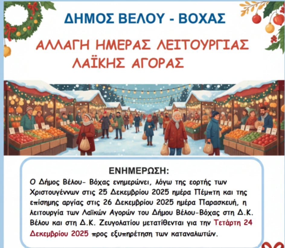 ΚΟΡΙΝΘΙΑΚΑ ΚΟΡΙΝΘΙΑ ΔΗΜΟΣ ΒΕΛΟΥ ΒΟΧΑΣ ΛΑΪΚΗ ΑΓΟΡΑ ΑΛΛΑΓΗ ΩΡΑΣ Βέλο Βόχα: Αλλαγή ημέρας λειτουργίας της Λαϊκής Αγοράς λόγω Χριστουγέννων 19/12/2025 @ 21:05 Copied to clipboard Διαβάστε επίσης 19/12/2025 @ 21:16 Ηρακλής Ξυλοκάστρου vs Ολυμπιακός Άσσου 19/12/2025 @ 19:06 Ετoιμοπόλεμος για τον αυριανό αγώνα ο Πέλοπας Κιάτου 19/12/2025 @ 14:32 ΣΥΝΕΝΤΕΥΞΗ με το Γιώργο Πετρίτση: Κορινθία, Περιφέρεια και Λουτράκι στο μικροσκόπιο 19/12/2025 @ 13:13 Ξυλόκαστρο: Αλλαγή μέρας λειτουργίας της Λαϊκής Αγοράς λόγω Χριστουγέννων 19/12/2025 @ 01:17 Εκπαιδευτική επίσκεψη του Δημοτικού Σχολείου Χιλιομοδίου στη Βουλή (ΦΩΤΟ) Ροή ειδήσεων 19/12/2025 @ 21:16 Ηρακλής Ξυλοκάστρου vs Ολυμπιακός Άσσου 19/12/2025 @ 21:05 Βέλο Βόχα: Αλλαγή ημέρας λειτουργίας της Λαϊκής Αγοράς 19/12/2025 @ 19:24 Αυξάνονται οι πιθανότητες για λευκά Χριστούγεννα - Υπό στενή παρακολούθηση το σενάριο των Ιταλών 19/12/2025 @ 19:06 Ετoιμοπόλεμος για τον αυριανό αγώνα ο Πέλοπας Κιάτου 19/12/2025 @ 18:56 Εξιχνιάστηκε υπόθεση ληστείας στην Αργολίδα 19/12/2025 @ 15:40 12η Ετήσια Γενική Συνέλευση του Τουριστικού Οργανισμού Λουτρακίου(ΦΩΤΟ+ΒΙΝΤΕΟ) 19/12/2025 @ 14:38 Η Περιφερειακή Αρχή του κυρίου Πτωχού είπε ΟΧΙ στα δίκαια αιτήματα των αγροτών, προτάσσοντας την κομματική της ταυτότητα! 19/12/2025 @ 14:32 ΣΥΝΕΝΤΕΥΞΗ με το Γιώργο Πετρίτση: Κορινθία, Περιφέρεια και Λουτράκι στο μικροσκόπιο 19/12/2025 @ 14:10 Μαθητική Κινητοποίηση και Κατάληψη σε Ένδειξη Συμπαράστασης προς τον Αγροτικό Κόσμο της Νεμέας 19/12/2025 @ 13:13 Ξυλόκαστρο: Αλλαγή μέρας λειτουργίας της Λαϊκής Αγοράς λόγω Χριστουγέννων 19/12/2025 @ 12:59 Χριστουγεννιάτικο μήνυμα του Μητροπολίτη Αργολίδας 19/12/2025 @ 10:55 Γιώργος Μαζωνάκης: “Θα καταθέσουμε μήνυση εναντίον του επιχειρηματία και δύο συγγενών του” λέει ο δικηγόρος του τραγουδιστή 19/12/2025 @ 10:37 Πρόληψη, Αυτοέλεγχος & Ασφαλής Οδήγηση. Δεύτερη Μεγάλη Δράση στην Κόρινθο 19/12/2025 @ 10:23 Το Επιμελητήριο Αρκαδίας ανοίγει τον δρόμο στην Πράσινη Μετάβαση της Γεωργίας μέσω Erasmus+ 19/12/2025 @ 09:32 Φρεγάτα «Κίμων»: η Ελλάδα επιστρέφει δυναμικά στη Μεσόγειο με Belharra 19/12/2025 @ 09:24 Serenity Village: Πώς προχωρά η επένδυση ύψους €474 εκατ. του Γιάννη Βαρδινογιάννη (χάρτης) 19/12/2025 @ 01:17 Εκπαιδευτική επίσκεψη του Δημοτικού Σχολείου Χιλιομοδίου στη Βουλή (ΦΩΤΟ) 19/12/2025 @ 00:55 Βέλο Βόχα: Με επιτυχία ολοκληρώθηκε η χριστουγεννιάτικη γιορτή στα σχολεία Κοκκωνίου Πουλίτσας 18/12/2025 @ 17:35 Ξυλόκαστρο: Συνεδριάζει το Δημοτικό Συμβούλιο την Δευτέρα 22 Δεκεμβρίου 18/12/2025 @ 17:28 Ολοκληρώθηκε η ανάκριση για το «μπάζωμα» στα Τέμπη με την απολογία Τριαντόπουλου Δείτε επίσης 19/12/2025 @ 14:38 Η Περιφερειακή Αρχή του κυρίου Πτωχού είπε ΟΧΙ στα δίκαια αιτήματα των αγροτών, προτάσσοντας την κομματική της ταυτότητα! 19/12/2025 @ 10:55 Γιώργος Μαζωνάκης: “Θα καταθέσουμε μήνυση εναντίον του επιχειρηματία και δύο συγγενών του” λέει ο δικηγόρος του τραγουδιστή 19/12/2025 @ 09:32 Φρεγάτα «Κίμων»: η Ελλάδα επιστρέφει δυναμικά στη Μεσόγειο με Belharra 19/12/2025 @ 09:24 Serenity Village: Πώς προχωρά η επένδυση ύψους €474 εκατ. του Γιάννη Βαρδινογιάννη (χάρτης) 18/12/2025 @ 12:00 Δίκη Λυγγερίδη: Διακόπηκε για τις 14 Ιανουαρίου – Στο εδώλιο έχουν παραπεμφθεί 147 άτομα 18/12/2025 @ 10:37 Περιφερειακό Συμβούλιο Πελοποννήσου: Δεν αποδέχτηκε η πλειοψηφία το κείμενο αιτημάτων των παραγωγών 18/12/2025 @ 09:49 Metlen: Συμφωνία με KNDS για κατασκευή αρμάτων μάχης στον Βόλο 18/12/2025 @ 09:20 Παραδόθηκε 30χρονος στην Καλαμάτα για το διπλό φονικό στη Φοινικούντα