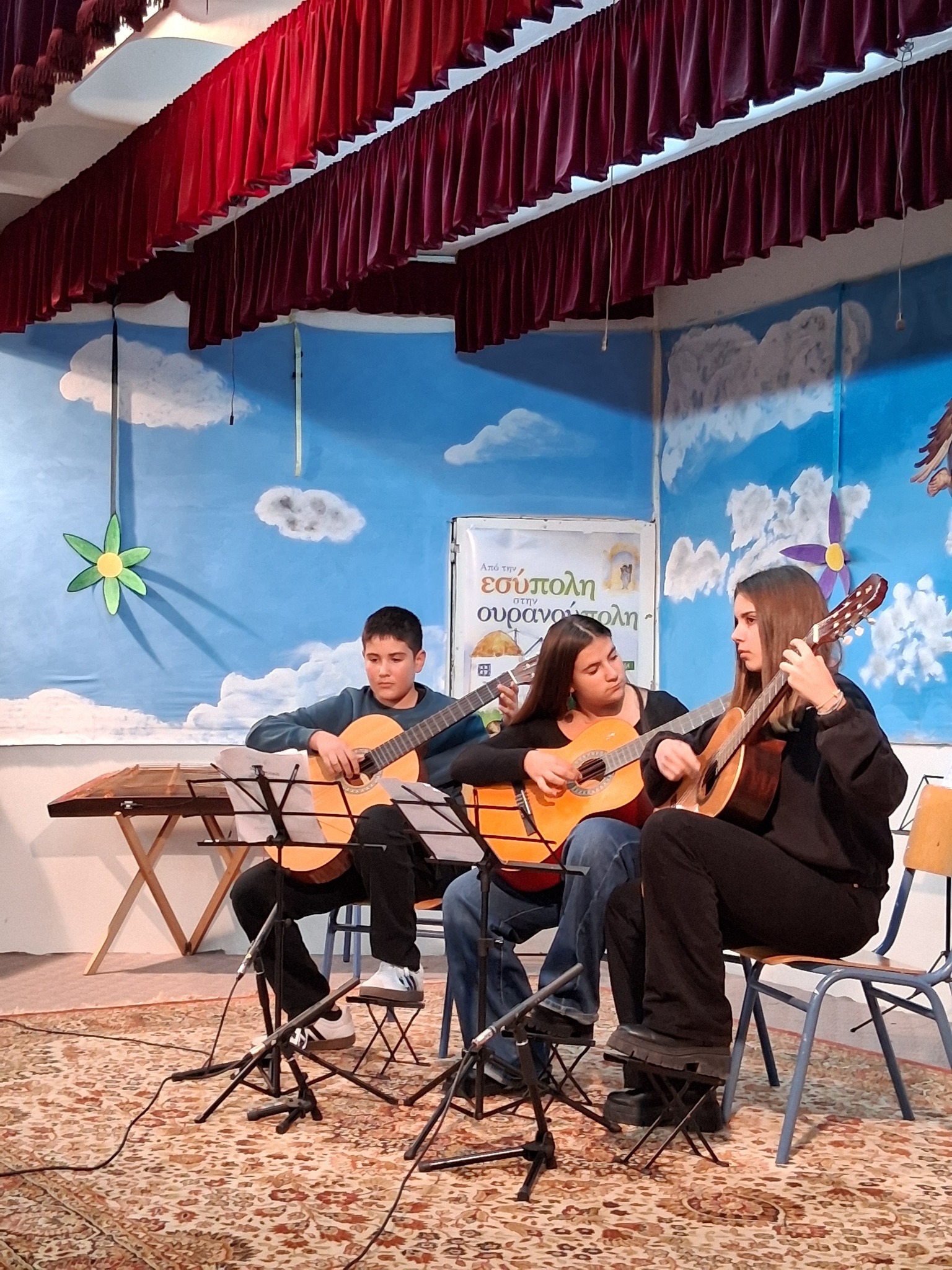 Οι μαθητές και οι μαθήτριες του πιάνου, της κιθάρας, του σαντουριού, της μουσικοκινητικής αγωγής, της Βυζαντινής μουσικής και της Χορωδίας Παραδοσιακής Μουσικής γέμισαν με εορταστικές μελωδίες την αίθουσα του Πνευματικού Κέντρου.