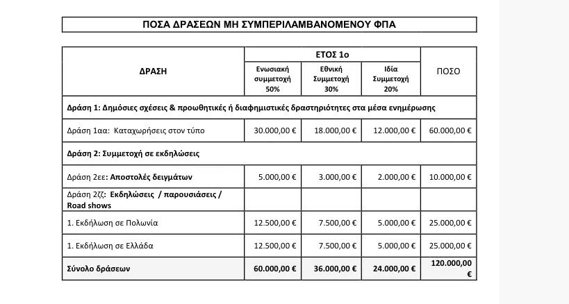 Το πρόγραμμα, υποτίθεται, έχει σκοπό την προβολή της τοπικής οινοπαραγωγής σε δύο μεγάλες αγορές της Ε.Ε., τη Γερμανία και την Πολωνία. Για τον πρώτο χρόνο υλοποίησης, το 2025, προέβλεπε δαπάνη περίπου 500.000 ευρώ, από τα οποία περίπου 300.000 ευρώ ανατέθηκαν σε δύο εταιρείες, την GPG και την DAMA ΙΚΕ, χωρίς κάποιο ενθαρρυντικό χαρτοφυλάκιο.