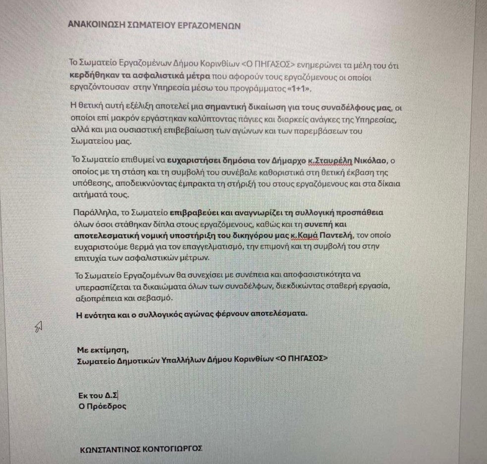 ΚΟΡΙΝΘΙΑΚΑ ΔΗΜΟΣ ΚΟΡΙΝΘΙΩΝ ΣΩΜΑΤΕΙΟ ΕΡΓΑΖΟΜΕΝΩΝ ΝΙΚΟΣ ΣΤΑΥΡΕΛΗΣ Ευχαριστήριο Σωματείου Εργαζομένων δήμου Κορινθίων σε Νίκο Σταυρέλη Κερδήθηκαν τα ασφαλιστικά μέτρα εργαζομένων που ήταν στο πρόγραμμα 1+1. 22/01/2026 @ 13:31 Copied to clipboard Διαβάστε επίσης 22/01/2026 @ 14:25 "Οι τελευταίες πολιτικές εξελίξεις - Σε ένα κόσμο που φλέγεται, ο λαός με το ΚΚΕ μπορεί να γίνει πρωταγωνιστής" στην Κόρινθο 22/01/2026 @ 12:35 Εμπορικός Σύλλογος Κορίνθου: Στηρίζοντας τα μικρά καταστήματα, στηρίζουμε τους συλλόγους και την πόλη μας. 21/01/2026 @ 14:43 Με μεγάλη συμμετοχή πολιτών και εκπροσώπων φορέων πραγματοποιήθηκε η παρουσίαση των Εναλλακτικών Σεναρίων Χωρικής Ανάπτυξης 21/01/2026 @ 13:20 Πρόσκληση συμμετοχής στις αρχαιρεσίες του Εργατικού Κέντρου Κορίνθου 21/01/2026 @ 12:48 Με Ι. Αγρυπνία εορτάστηκε η Σύναξη της Παναγίας Παραμυθίας στην Κόρινθο Ροή ειδήσεων 22/01/2026 @ 14:44 Νεμέα: Κανένας Αντιδήμαρχος ουδέποτε είχε συνομιλία με τον ομιλούντα στο συγκεκριμένο video και ζήτησε προσωπικά στοιχεία 22/01/2026 @ 14:25 "Οι τελευταίες πολιτικές εξελίξεις - Σε ένα κόσμο που φλέγεται, ο λαός με το ΚΚΕ μπορεί να γίνει πρωταγωνιστής" στην Κόρινθο 22/01/2026 @ 14:04 Τον «ρούφηξε» το κύμα: Το Άστρος Κυνουρίας πενθεί τον άτυχο σημαιοφόρο λιμενικό, Ανδρέα Αραχωβίτη (ΦΩΤΟ) 22/01/2026 @ 13:31 Ευχαριστήριο Σωματείου Εργαζομένων δήμου Κορινθίων σε Νίκο Σταυρέλη 22/01/2026 @ 12:54 Ο Πάρνωνας δεν θα γίνει τσιμέντο και ανεμογεννήτριες 22/01/2026 @ 12:35 Εμπορικός Σύλλογος Κορίνθου: Στηρίζοντας τα μικρά καταστήματα, στηρίζουμε τους συλλόγους και την πόλη μας. 22/01/2026 @ 10:51 Ξυλόκαστρο: Κοπή πίτας του Πολιτιστικού Συλλόγου Ροζενών Ευρωστίνης 21/01/2026 @ 19:12 Κανονικά η λειτουργία σχολείων και κοινωνικών δομών στην Π.Ε. Κορινθίας την Πέμπτη 22 Ιανουαρίου 2026 21/01/2026 @ 18:45 Ξυλόκαστρο: Κοπή πίτας του Πολιτιστικού Συλλόγου Λυκοποριάς 21/01/2026 @ 17:00 Γ. Ψυχογιός: «Προχωρήστε σε 120 δόσεις, όπως κάναμε το 2019!» 21/01/2026 @ 15:06 Ποιες είναι οι κρίσιμες ώρες της κακοκαιρίας για την Κορινθία και την Πελοπόννησο 21/01/2026 @ 14:49 Κλειστό το Ταμείο του Δήμου από 22.01 έως και 23.01.2026 21/01/2026 @ 14:43 Με μεγάλη συμμετοχή πολιτών και εκπροσώπων φορέων πραγματοποιήθηκε η παρουσίαση των Εναλλακτικών Σεναρίων Χωρικής Ανάπτυξης 21/01/2026 @ 14:11 Την Κυριακή κόβει την πίτα της η Νίκη Κορινθίας 21/01/2026 @ 13:55 Η απόλυτη ντροπή της Ελλάδας 21/01/2026 @ 13:44 Α.Ε. Σολομού vs Α.Ο ΛΥΚΟΠΟΡΙΑΣ 21/01/2026 @ 13:30 ΣΥΠΑ: Όλοι στο δρόμο της διεκδίκησης επαναφοράς του 13ου και 14ου μισθού 21/01/2026 @ 13:20 Πρόσκληση συμμετοχής στις αρχαιρεσίες του Εργατικού Κέντρου Κορίνθου 21/01/2026 @ 12:48 Με Ι. Αγρυπνία εορτάστηκε η Σύναξη της Παναγίας Παραμυθίας στην Κόρινθο 21/01/2026 @ 12:30 Ναυτικός Όμιλος Κορίνθου – Διεθνής Συμμετοχή σε αγώνες κολύμβησης στη Στουτγκάρδη Δείτε επίσης 22/01/2026 @ 13:31 Ευχαριστήριο Σωματείου Εργαζομένων δήμου Κορινθίων σε Νίκο Σταυρέλη 22/01/2026 @ 12:54 Ο Πάρνωνας δεν θα γίνει τσιμέντο και ανεμογεννήτριες 22/01/2026 @ 12:35 Εμπορικός Σύλλογος Κορίνθου: Στηρίζοντας τα μικρά καταστήματα, στηρίζουμε τους συλλόγους και την πόλη μας. 21/01/2026 @ 14:11 Την Κυριακή κόβει την πίτα της η Νίκη Κορινθίας 21/01/2026 @ 13:55 Η απόλυτη ντροπή της Ελλάδας 21/01/2026 @ 12:27 9 Φεβρουαρίου η κοπή πίτας της ΕΠΣ Κορινθίας 21/01/2026 @ 12:12 Γιώργος Φλωρίδης για δίκη Λυγγερίδη: Απαραίτητο για την ασφάλεια να διεξαχθεί στις φυλακές Κορυδαλλού 21/01/2026 @ 10:31 Ο σύλλογος για παιδιά με καρκίνο «Η Πίστη» τίμησε τον Γρηγόρη Δημητριάδη για τη συνεισφορά του