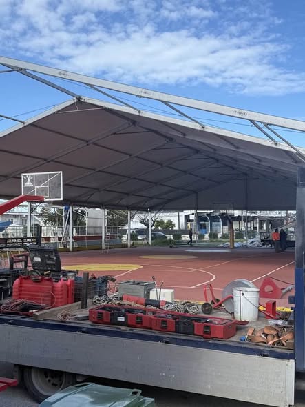 Ξεκινάμε ξηλώνοντας ..Από σήμερα ξεκινάει το έργο της κατασκευής του κλειστού γυμναστηρίου τύπου μπαλόνι ..