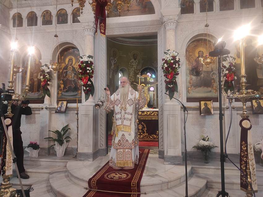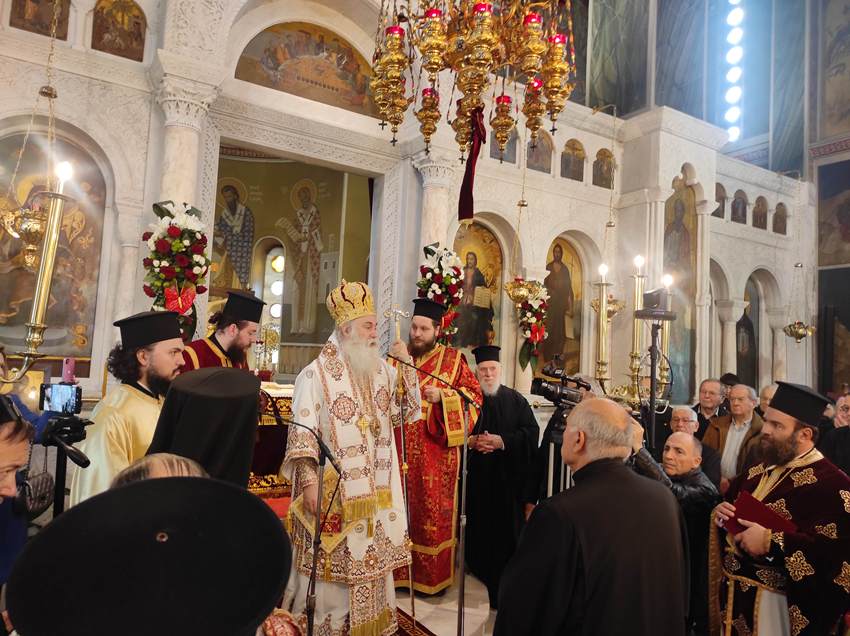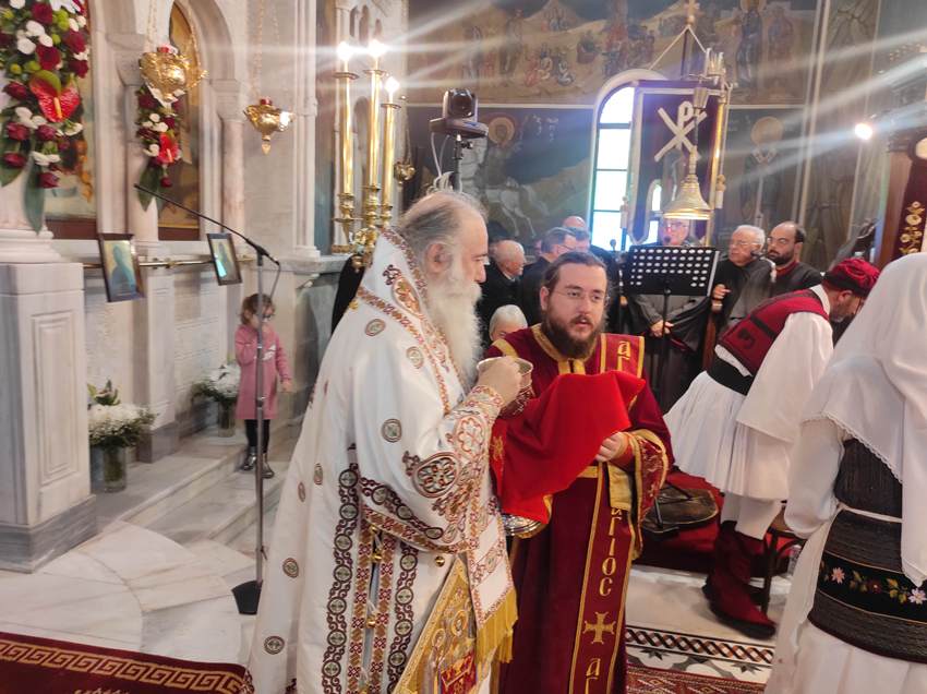 Ανήμερα της εορτής Τετάρτη 11 Φεβρουαρίου 2026, τελέσθηκε ο Όρθρος και η Πανηγυρική Αρχιερατική Θ. Λειτουργία, προεξάρχοντος του Σεβ. Μητροπολίτου κ. Παύλου πλαισιωμένου από τον Πανοσ. Αρχιμ. π. Αμβρόσιο Γκουρβέλο, εκ της Ι. Μητροπόλεως Πατρών, τον Ιεροκήρυκα της Ι. Μητροπόλεως Κορίνθου Πανοσ. Αρχιμ. π. Άνθιμο Παπαλεξόπουλο και πλήθους Ιερέων εκ των Αρχιερατικών Περιφερειών Ξυλοκάστρου και Ευρωστίνης. Προ του πέρατος της Θ. Λειτουργίας ο Σεβασμιώτατος χειροθέτησε Αναγνώστη τον Δεξιό Ιεροψάλτη του Ι. Ναού κ. Λεωνίδα Δρακόπουλο, δίδοντάς του εκ μέρους του Εκκλησιαστικού Συμβουλίου μια τιμητική πλακέτα για την τεσσαρανταετή διακονία του.