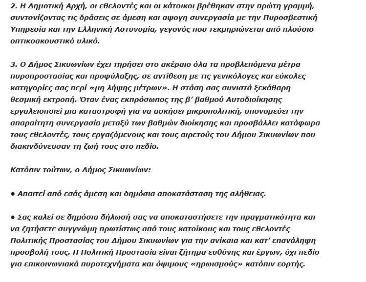 Ιδιαίτερη σημασία έχει η ασυνέπεια που προέκυψε: ο κ. Μυττάς ανέφερε ότι τη στιγμή που δημοσιεύτηκαν τα άρθρα η δημοτική αρχή «έτρεχε να δει τι συμβαίνει με τη φωτιά». Ωστόσο, το δημοσίευμα έγινε στις 17 Ιανουαρίου, ενώ η πυρκαγιά είχε εκδηλωθεί το περασμένο καλοκαίρι, γεγονός που καθιστά τη δήλωση αναληθή και χρονολογικά αδύνατη. Η αντίφαση αυτή δεν πέρασε απαρατήρητη από την αντιπολίτευση και προσθέτει αμφιβολίες για την αξιοπιστία της τοποθέτησης του αντιδημάρχου.