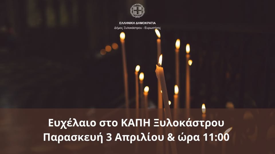Την Παρασκευή 3 Απριλίου και ώρα 11:00 π.μ., θα τελεστεί το Μυστήριο του Αγίου Ευχελαίου στον χώρο του ΚΑΠΗ Ξυλοκάστρου, ενόψει των Άγιων Ημερών του Πάσχα.