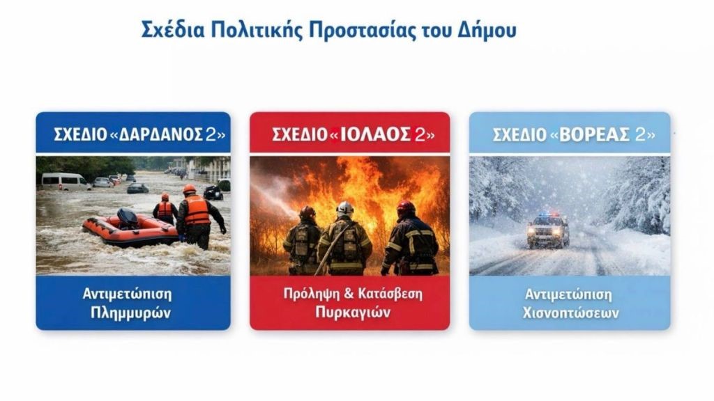 Παράλληλα, βρίσκεται σε εξέλιξη η εκπόνηση του σχεδίου για την αντιμετώπιση σεισμικών φαινομένων («ΕΓΚΕΛΑΔΟΣ 2»), με στόχο την ολοκληρωμένη θωράκιση της Πολιτικής Προστασίας του Δήμου.