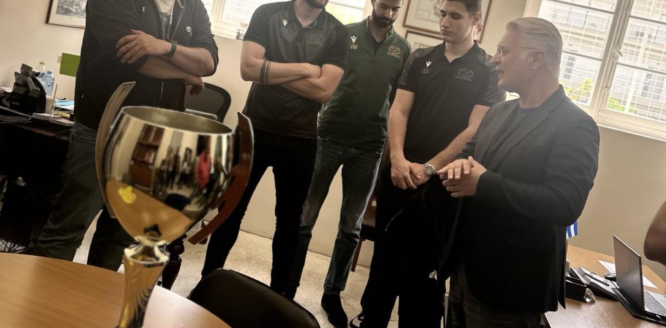 Ο Περιφερειάρχης Πελοποννήσου Δημήτρης Πτωχός υποδέχθηκε τους πρωταθλητές της Καλαμάτας ’80 στα γραφεία της Περιφερειακής Ενότητας Μεσσηνίας, μετά την πανάξια άνοδό τους στη Volley League. Παρόντες ήταν παίκτες, προπονητικό τιμ και μέλη της διοίκησης του συλλόγου, κρατώντας στα χέρια τους το τρόπαιο της ανόδου.