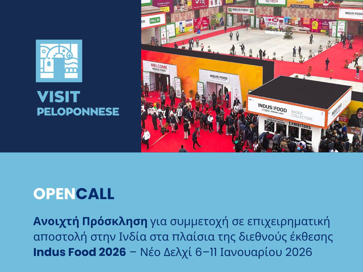 Η Περιφέρεια Πελοποννήσου απευθύνει πρόσκληση συμμετοχής σε επιχειρηματική αποστολή στην Ινδία, κατά τη διάρκεια της διεθνούς έκθεσης Indus Food, η οποία αποτελεί τη μεγαλύτερη B2B, κυβερνητική διεθνή έκθεση τροφίμων και ποτών, συγκεντρώνοντας πάνω από 7.500 αγοραστές από όλο τον κόσμο, με έμφαση σε διεθνείς συνεργασίες.