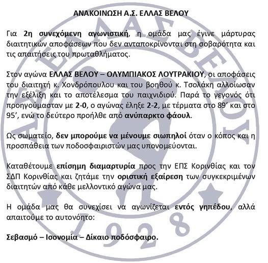 ΑΘΛΗΤΙΚΑ ΑΘΛΗΤΙΚΑ Ανακοινωση ΑΣ ΕΛΛΑΣ Βέλου για τον αγώνα με τον Ολυμπιακό Λουτρακίου 16/11/2025 @ 12:24 Copied to clipboard Διαβάστε επίσης 25/01/2026 @ 21:33 Ιστορικό «Διπλό» στην Πάτρα: Ο Πέλοπας Άλωσε την Αγυιά! 25/01/2026 @ 21:14 Ελλάδα-Ιταλία 12-5 στο Ευρωπαϊκό πρωτάθλημα πόλο 25/01/2026 @ 10:47 Αποτελέσματα των αγώνων της Α’ Κατηγορίας Κορινθίας 21/01/2026 @ 13:44 Α.Ε. Σολομού vs Α.Ο ΛΥΚΟΠΟΡΙΑΣ 19/01/2026 @ 16:45 Ελληνικός Οργανισμός Εργασιακής Άθλησης και Υγείας: «Μένουμε ενεργοί στην εργασία» Ροή ειδήσεων 28/01/2026 @ 14:04 Κόρινθος: Υπεγράφη η σύμβαση για το «μπαλόνι» 28/01/2026 @ 12:53 Δήμος Βέλου Βόχας: 𝚷𝛒ό𝛔𝛋𝛌𝛈𝛔𝛈 𝛔𝛕𝛈𝛎 𝛋𝛐𝛑ή 𝛕𝛈ς 𝚷𝛒𝛚𝛕𝛐𝛘𝛒𝛐𝛎𝛊ά𝛕𝛊𝛋𝛈ς 𝚷ί𝛕𝛂ς 28/01/2026 @ 11:43 Όραση: Γιατί δακρύζουν τα μάτια στο κρύο; 28/01/2026 @ 11:13 Επισκέψεις μαθητών στον Σεβ. Μητροπολίτη Κορίνθου κ. Παύλο (ΦΩΤΟ) 28/01/2026 @ 10:51 Δήμος Σικυωνίων: Ένας «μαραθώνιος» έργων για την αντιπλημμυρική θωράκιση του παραλιακού μετώπου 28/01/2026 @ 10:33 Συλλυπητήριο μήνυμα του Εργατικού Κέντρου Κορίνθου για τις νεκρές εργάτριες της βιομηχανίας «ΒΙΟΛΑΝΤΑ» 28/01/2026 @ 10:24 Γ. Ψυχογιός: Πολιτική για τη νόμιμη μετανάστευση χωρίς κανόνες για όλους και κράτος δικαίου δεν γίνεται 27/01/2026 @ 20:00 Δήμος Σκυωνίων: Παρών σε εκδηλώσεις συλλόγων της περιοχής ο Δημήτρης Πιστεύος (ΦΩΤΟ) 27/01/2026 @ 19:23 Ξεκινάει αύριο την λειτουργία του ο Βρεφονηπιακός Σταθμός Αθικίων 27/01/2026 @ 19:01 Ο Δήμος Κορινθίων κοντά στους ανθρώπους, όπου υπάρχει ανάγκη 27/01/2026 @ 18:03 Κορινθία: Τα Δρομολόγια των Κινητών Αστυνομικών Μονάδων για την εβδομάδα 27/01/2026 @ 17:00 Στοχευμένες αστυνομικές επιχειρήσεις πραγματοποιήθηκαν στην Αργολίδα, στην Κορινθία και στη Μεσσηνία 27/01/2026 @ 16:19 Η Ακαδημία μπάσκετ του ΑΟΞ κόβει την πίτα του αυτό το Σάββατο 27/01/2026 @ 13:57 Aυτοκίνητο διέλυσε μαγαζί στο Λουτράκι(ΦΩΤΟ) 27/01/2026 @ 12:53 Μεγάλη εμπορική συμφωνία ΕΕ - Ινδίας δημιουργεί μια αγορά 2 δισ. πολιτών: Πόσο πέφτουν οι δασμοί, ποια ελληνικά προϊόντα αφορά, δείτε πίνακες 27/01/2026 @ 12:13 Καμία απάντηση του Γ.Γ. του ΝΑΤΟ Μ. Ρούτε στον Γ. Μανιάτη για το άρθρο 5 του ΝΑΤΟ. 27/01/2026 @ 11:00 Δημοσκόπηση Interview: Ανέτοιμη για το 70% η Καρυστιανού, 1 στους 2 έχει χειρότερη εικόνα μετά τη δήλωση για τις αμβλώσεις 27/01/2026 @ 10:38 Όταν η διεκδίκηση φέρνει αποτέλεσμα και η αδράνεια ψάχνει άλλοθι 27/01/2026 @ 10:33 Σε εκδηλώσεις κοπής πίτας ο Σεβ.Μητροπολίτης κ. Παύλος 27/01/2026 @ 10:30 Αναβάλλεται λόγω της τραγωδίας ο αγώνας Α.Ο Τρίκαλα – ΠΑΣ Κόρινθος Δείτε επίσης 27/01/2026 @ 13:57 Aυτοκίνητο διέλυσε μαγαζί στο Λουτράκι(ΦΩΤΟ) 27/01/2026 @ 12:53 Μεγάλη εμπορική συμφωνία ΕΕ - Ινδίας δημιουργεί μια αγορά 2 δισ. πολιτών: Πόσο πέφτουν οι δασμοί, ποια ελληνικά προϊόντα αφορά, δείτε πίνακες 27/01/2026 @ 12:13 Καμία απάντηση του Γ.Γ. του ΝΑΤΟ Μ. Ρούτε στον Γ. Μανιάτη για το άρθρο 5 του ΝΑΤΟ. 26/01/2026 @ 14:02 Παρατείνεται η προθεσμία για αιτήματα τροποποίησης των ΓΠΣ -Αφορά τα ΓΠΣ Κορίνθου, Άσσου – Λέχαιου και το ΣΧΟΑΠ Τενέας 26/01/2026 @ 13:32 1η Φεβρουαρίου γενική συνέλευση του ΠΑΣ Κόρινθος 26/01/2026 @ 12:41 Π. Μαρινάκης: Αναφαίρετο δικαίωμα της Ελλάδας η επέκταση των χωρικών υδάτων που θα το ασκήσει στον σωστό χρόνο 26/01/2026 @ 11:25 Παραμένει στην Α.Δ.Κορινθίας ο Ιωάννης Αθανασόπουλος 26/01/2026 @ 10:46 Ο Τρίτος Αναπτυξιακός Άξονας της Πελοποννήσου