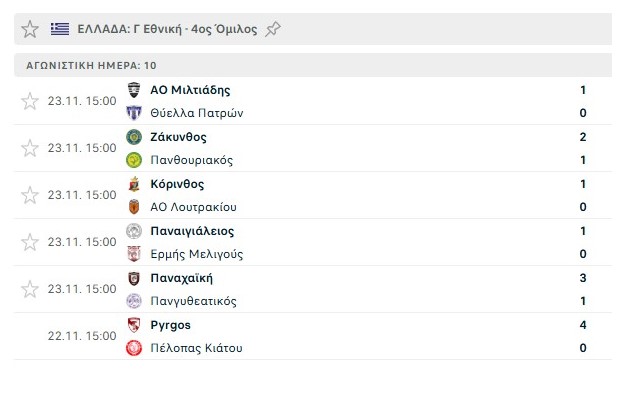Η Βαθμολογία του 4ου Ομίλου της Γ'εθνικής: