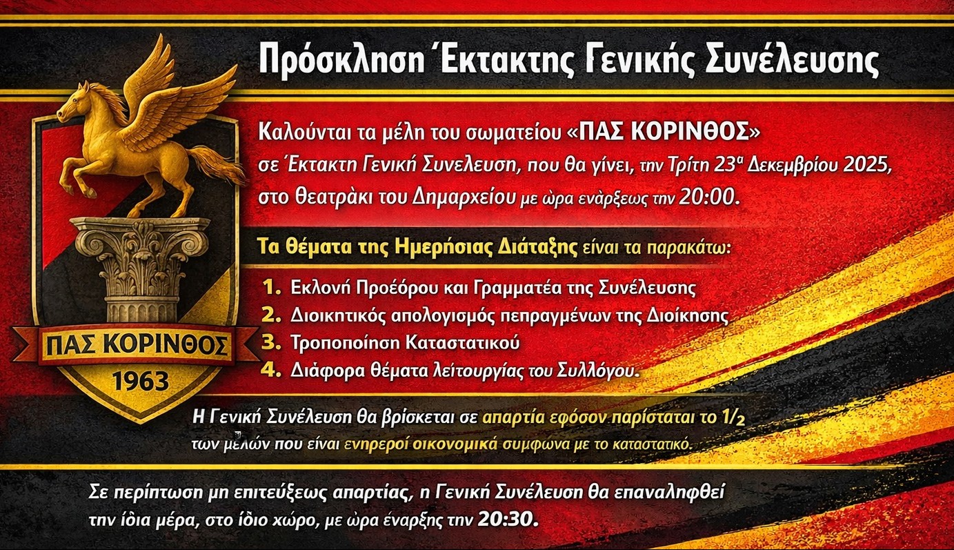 Έκτακτη γενική συνέλευση του ΠΑΣ Κόρινθος
