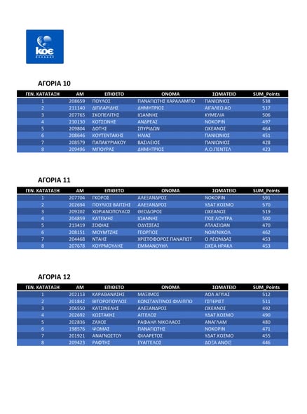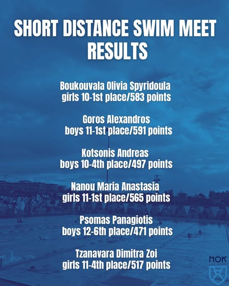 Μια σημαντική διάκριση πέτυχαν έξι αθλητές του προαγωνιστικού μας τμήματος, καθώς με τις αποτελέσματά τους στους αγώνες επιδόσεων 25 μέτρων στο Λουτράκι κατάφεραν να συγκεντρώσουν βαθμούς, σύμφωνα με το σύστημα βαθμολόγησης της ΚΟΕ, που τους κατέταξαν στους 8 καλύτερους αθλητές της Ελλάδας στις ηλικιακές τους κατηγορίες. Μάλιστα τρεις (3) από τους αθλητές μας βρέθηκαν στην πρώτη θέση!
