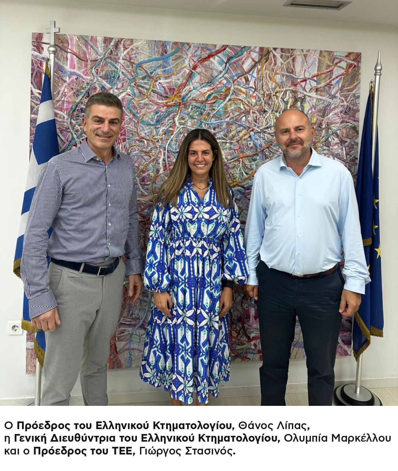 Το Ελληνικό Κτηματολόγιο αναλαμβάνει την παροχή στο ΤΕΕ όλων των διαδικασιών/απαιτήσεων για την υποβολή των αιτήσεων συμμετοχής, την παροχή εκπαιδευτικού υλικού και τον καθορισμό των διαδικαστικών όρων των εξετάσεων, για τη λειτουργία του Μητρώου Πιστοποιημένων Μηχανικών Κτηματολογίου, στο πλαίσιο Προγραμματικής Σύμβασης, που υπέγραψαν ο πρόεδρος του Ελληνικού Κτηματολογίου κ. Θάνος Λίπας και ο πρόεδρος του ΤΕΕ κ. Γιώργος Στασινός.