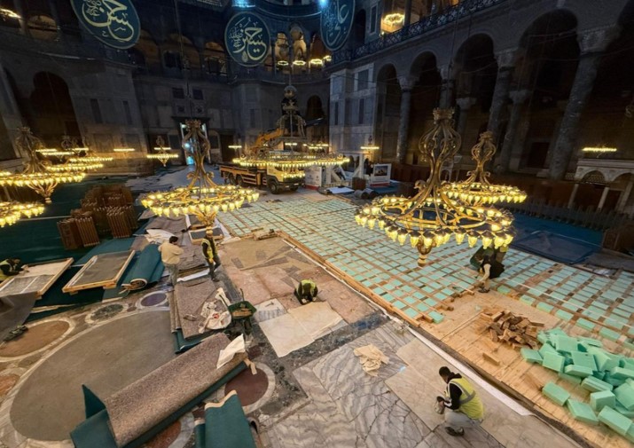 Την ίδια κατάπληξη ένιωσαν και πολλοί Τούρκοι επιστήμονες, αρχιτέκτονες, αρχαιολόγοι, ιστορικοί οι οποίοι είδαν από κοντά το εσωτερικό της Αγίας Σοφίας να μετατρέπεται σε εργοτάξιο ενός γενικού έργου. Τα εν λόγω μηχανήματα συμμετέχουν σε εργασίες προστασίας και επισκευής του φέροντα οργανισμού της Μεγάλης Εκκλησίας, με ιδιαίτερη έμφαση στην ενίσχυση της ικανότητας του δομήματος να αναλαμβάνει επιτυχώς σεισμικές φορτίσεις.