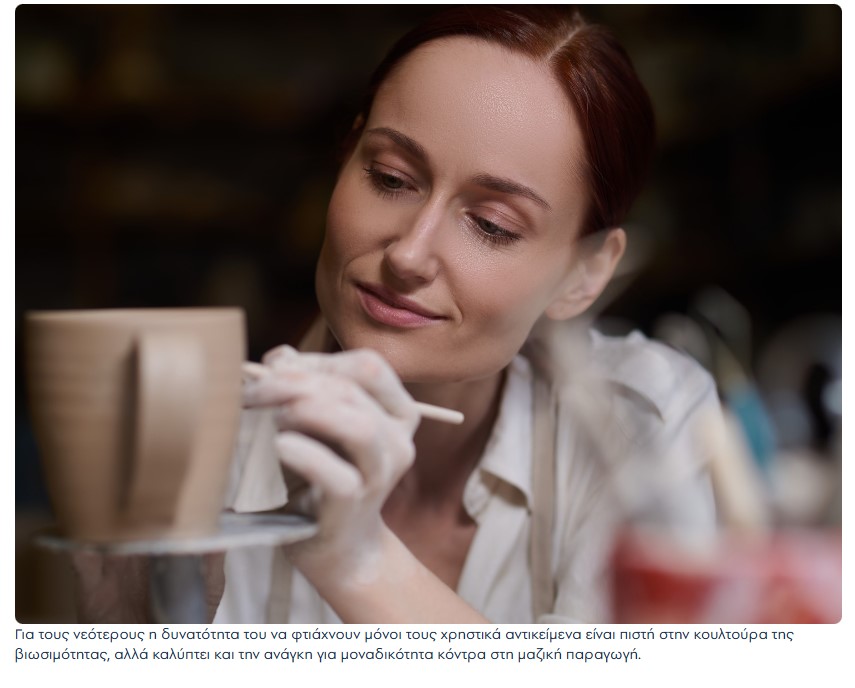 Για τις γενιές που έχουν δει την ταινία Ghost με τον Πάτρικ Σουέιζι, η εικόνα του τροχού που γυρίζει αποτελεί μια κλασική κινηματογραφική σκηνή αισθησιασμού. Για τους λίγο νεότερους, η δυνατότητα του να φτιάχνουν μόνοι τους χρηστικά αντικείμενα ή ιδιαίτερα δώρα για τους φίλους τους καλύπτει και την τάση για εναλλακτικές ζειν επιλογές, είναι πιστή στην κουλτούρα της βιωσιμότητας, αλλά καλύπτει και την ανάγκη για μοναδικότητα κόντρα στη μαζική παραγωγή. Έτσι στα εργαστήρια κεραμικής, συναντά κανείς ανθρώπους κάθε ηλικίας και φύλου, από παιδιά δημοτικού που φοράνε κάτω απ’ την ποδιά τη στολή του ποδοσφαίρου γιατί αμέσως μετά έχουν προπόνηση μέχρι ηλικιωμένους που με τα δάχτυλά τους λερωμένα με πηλό στερεώνουν τα γυαλιά στο πρόσωπό τους.