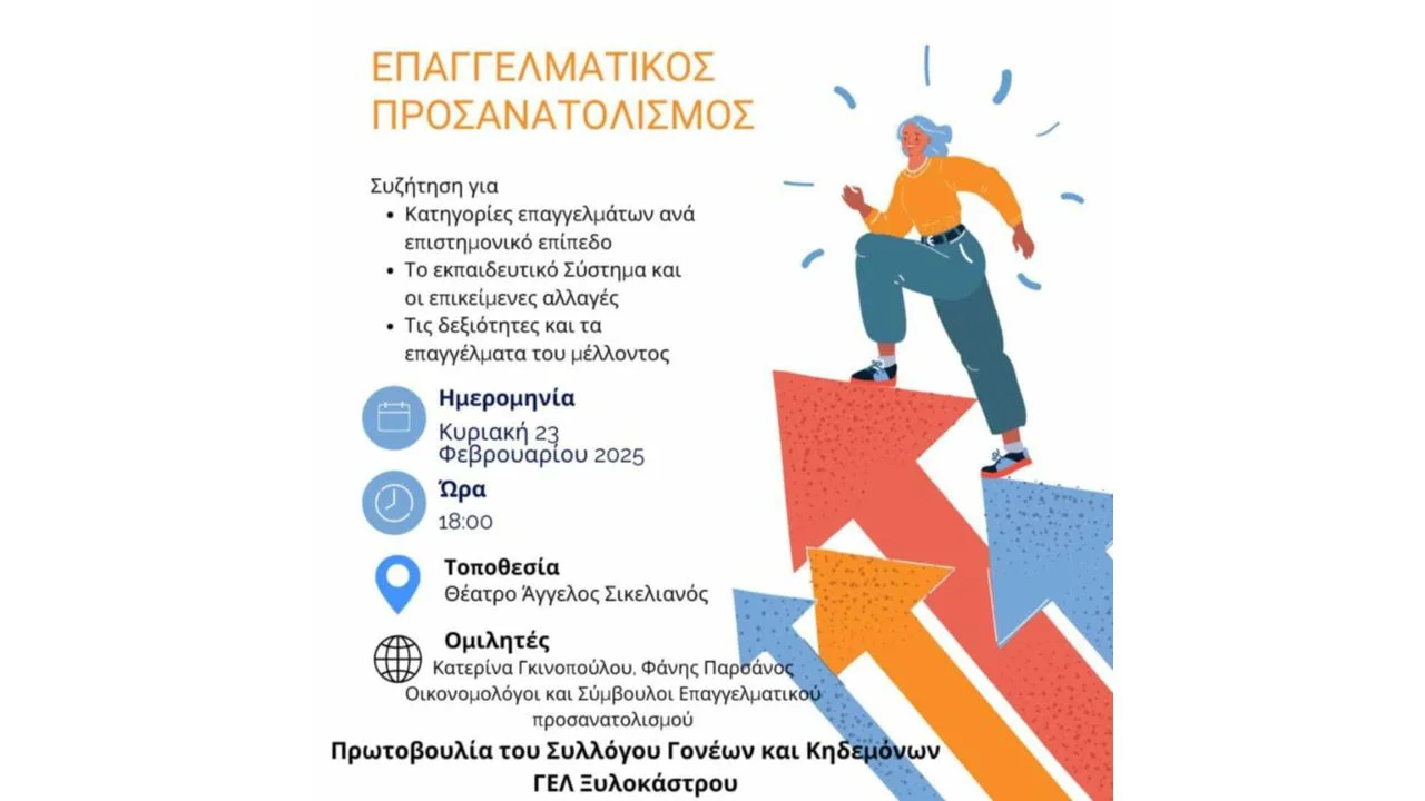 ΞΥΛΟΚΑΣΤΡΟ: Ημερίδα Επαγγελματικού Προσανατολισμού από τον Σύλλογο Γονέων και Κηδεμόνων ΓΕΛ