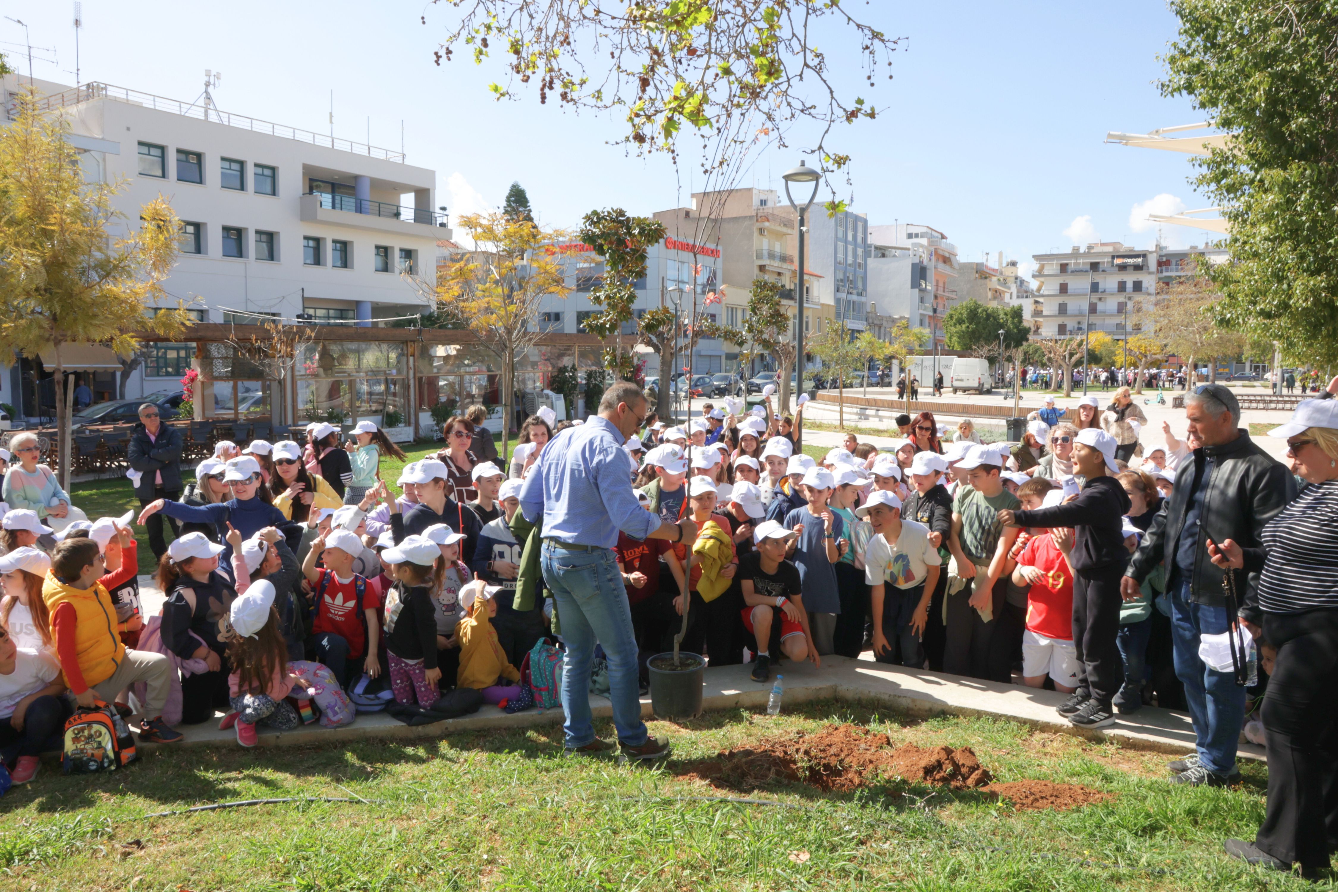 Ο Δήμαρχος, Νίκος Σταυρέλης, ευχαρίστησε τους μικρούς και μεγάλους δημότες για την αποδοχή της πρόσκλησης που έστειλε να συμμετάσχουν στην δενδροφύτευση: «Αυτή η σημερινή πράξη είναι μια πράξη αγάπης για την πόλη μας και το περιβάλλον», είπε ενώ απευθυνόμενος στα παιδιά πρόσθεσε: «Κάποια στιγμή στο μέλλον, θα περπατάτε στην πόλη με τα δικά σας παιδιά, θα βλέπετε το δέντρο που σήμερα φυτεύετε και θα τους λέτε ότι αυτό είναι δικό σας, ότι εσείς το φυτέψατε και το υιοθετήσατε…».