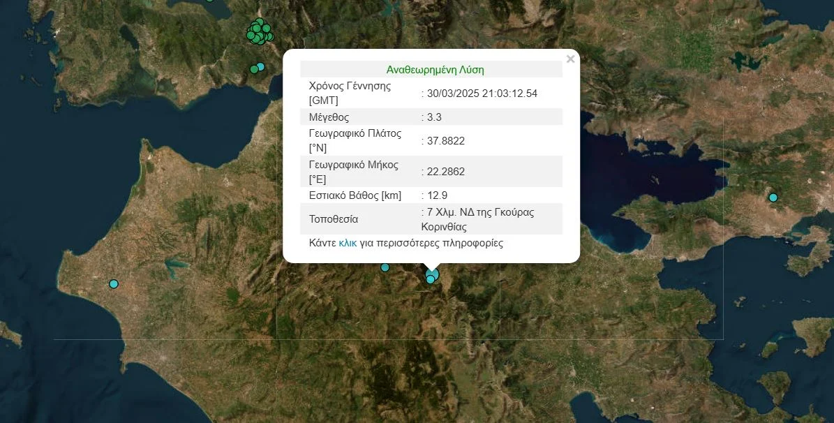 Σεισμός 3,3 Ρίχτερ στην Κόρινθο