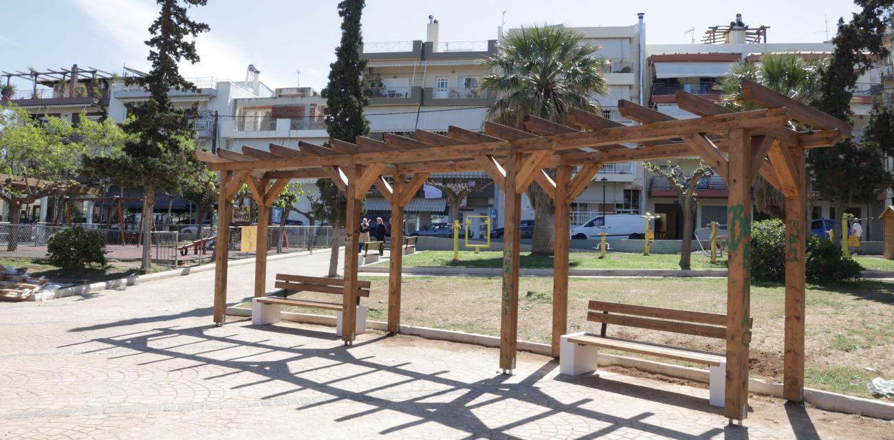 Μέσα από αυτή την ανάπλαση στην πλατεία Ηλιόπουλου τοποθετήθηκαν νέα σκίαστρα, πέργκολες, καινούργια παγκάκια και σύγχρονα φωτιστικά σώματα δίνοντας μία νέα, πολύ καλύτερη όψη στην πλατεία που εξυπηρετεί μια περιοχή, όπου ζουν 15.000 άνθρωποι. Παράλληλα, η φύτευση νέων δέντρων και βλάστησης θα συμβάλει στη μείωση της θερμικής νησίδας.