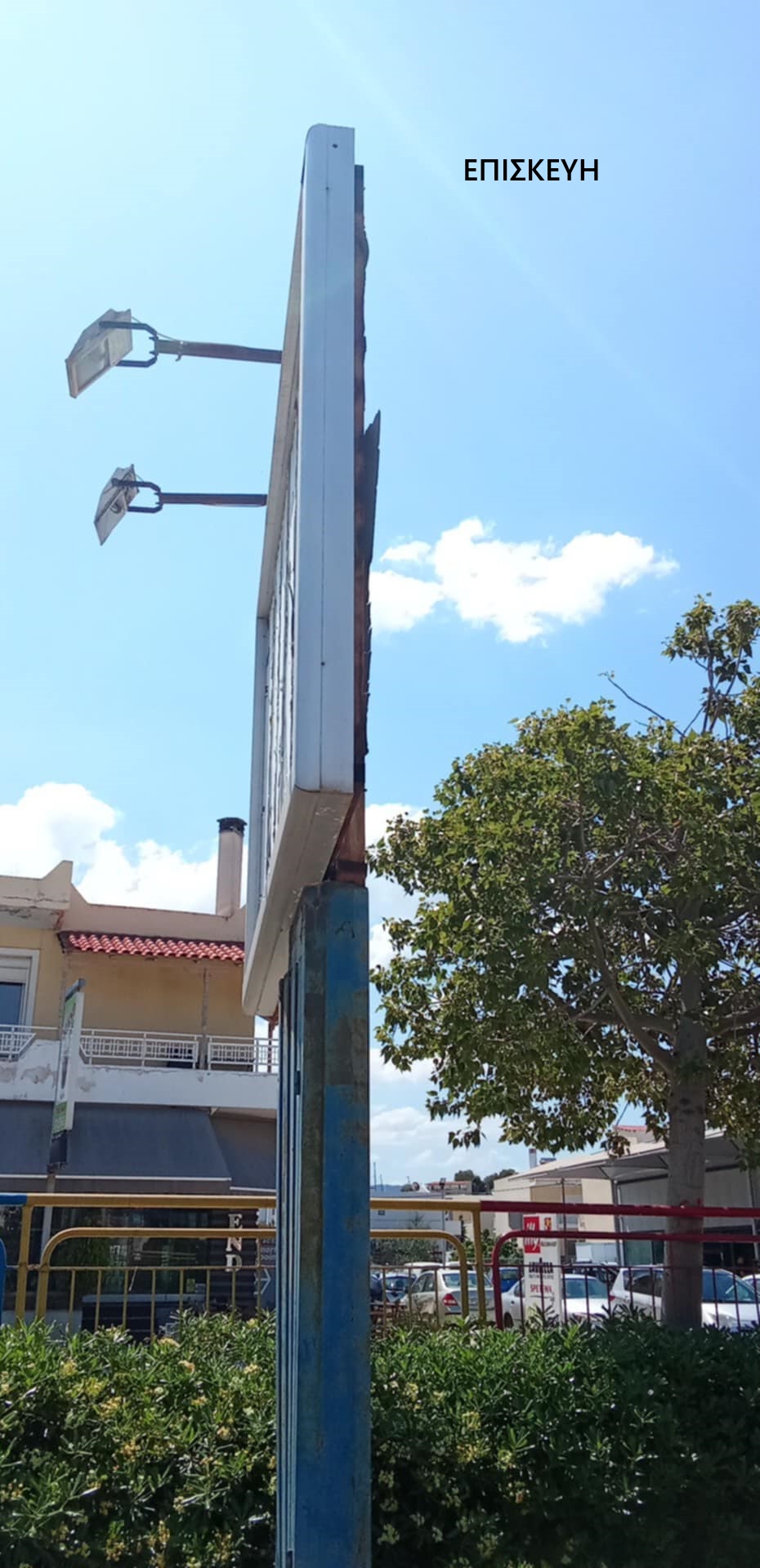 Χαρακτηριστικό παράδειγμα, η πινακίδα που «επισκευάστηκε» πρόχειρα, με μία και μόνο βίδα, γεγονός που εγείρει ερωτήματα για τη σοβαρότητα με την οποία αντιμετωπίζεται η συντήρηση του χώρου. Είναι λυπηρό να βλέπουμε εικόνες, όπως η τεράστια λαμαρίνα, που μπορεί να είχε ξεκολλήσει από τους δυνατούς ανέμους που έπνεεαν στην περιοχή τις προηγούμενες ημέρες και να είχε προκληθεί σοβαρότατο ατύχημα.