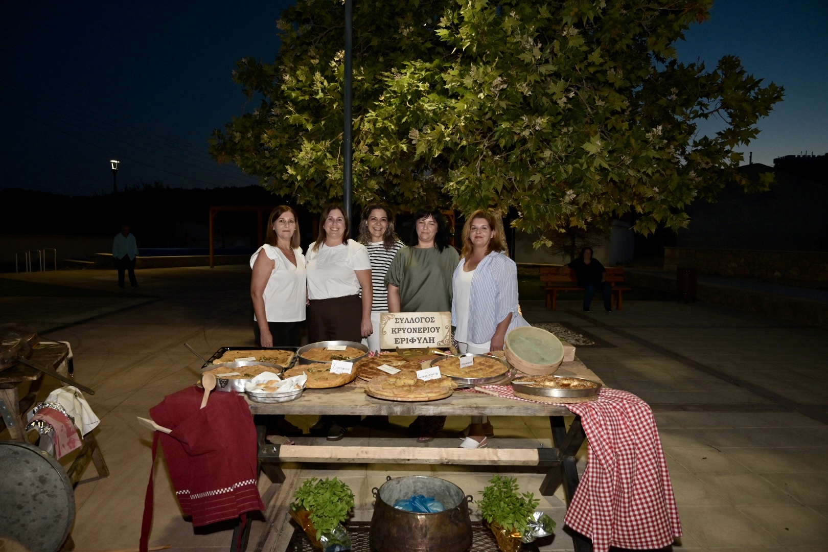 Χθες το βράδυ η πλατεία του Κρυονερίου γέμισε με αρώματα, γέλια και μνήμες από άλλες εποχές, στην «Ημέρα Μαγειρικής» που διοργάνωσε ο Σύλλογος Γυναικών Κρυονερίου Εριφύλη.