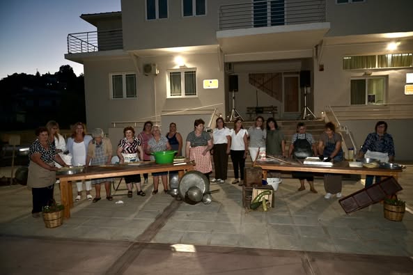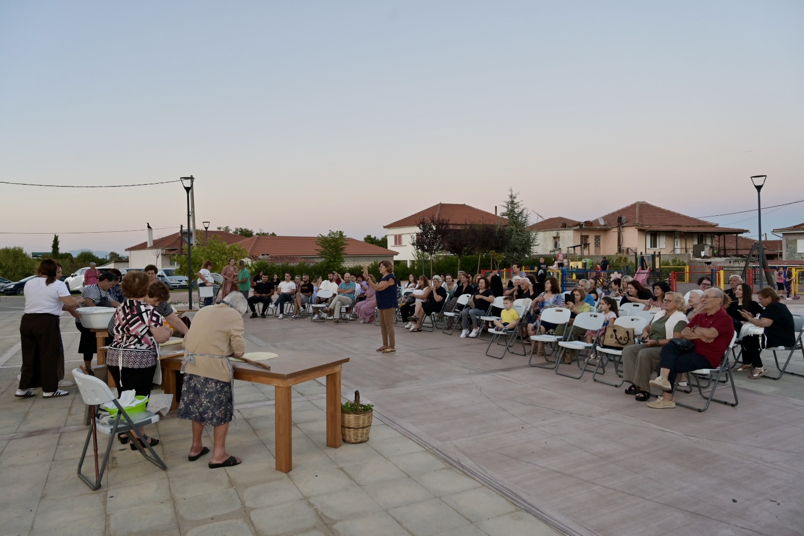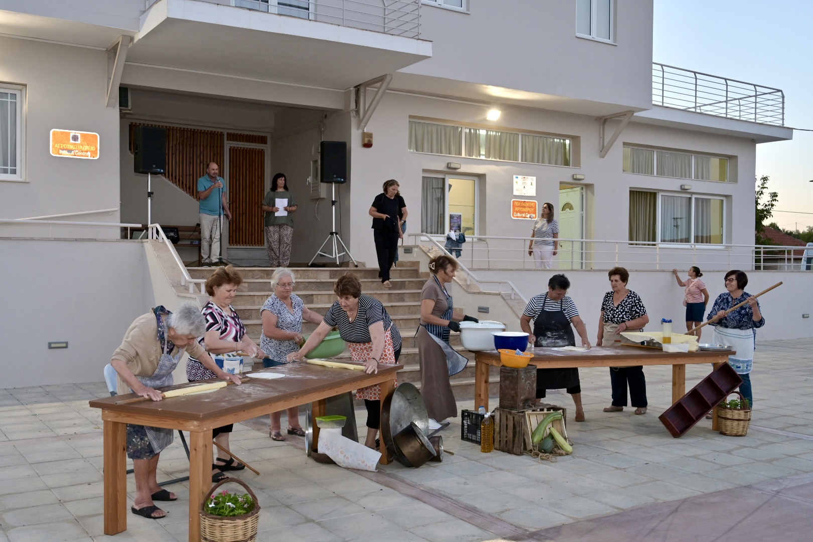Οι γιαγιάδες και οι γυναίκες της κοινότητας μοιράστηκαν με αγάπη την τέχνη τους στο άνοιγμα του παραδοσιακού φύλλου, διδάσκοντας βήμα-βήμα τη διαδικασία της παρασκευής πίτας, όπως ακριβώς γινόταν στα σπίτια παλιότερα.