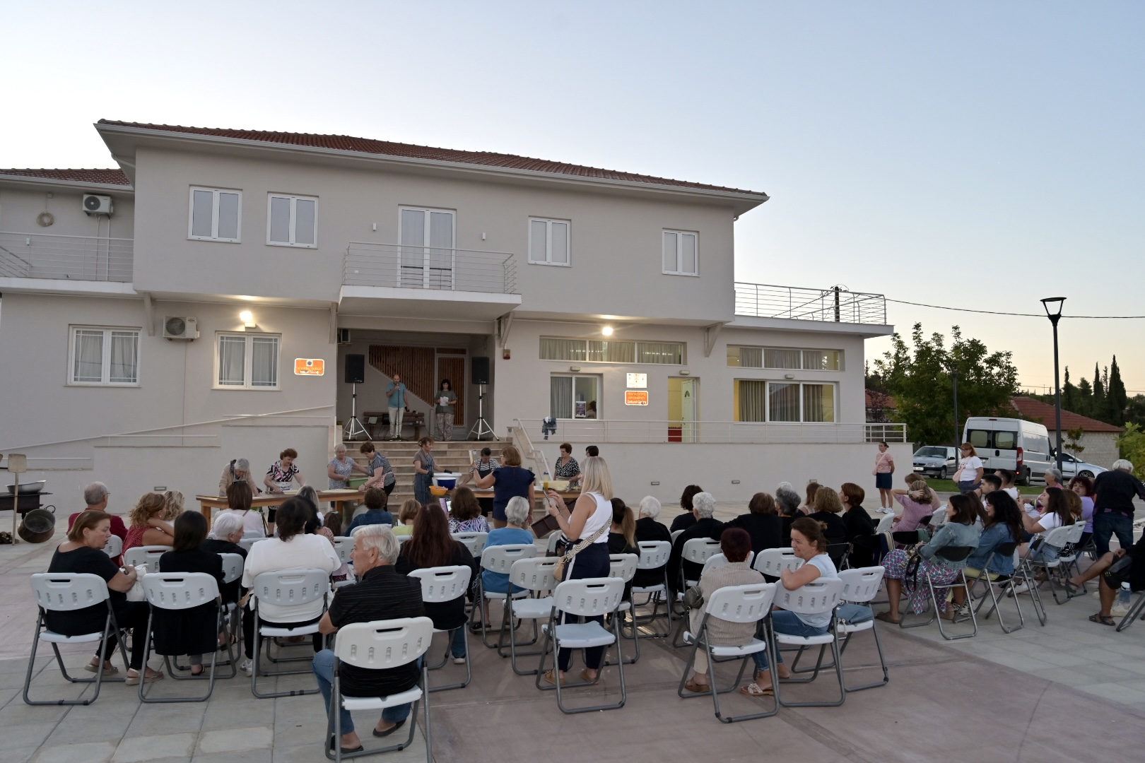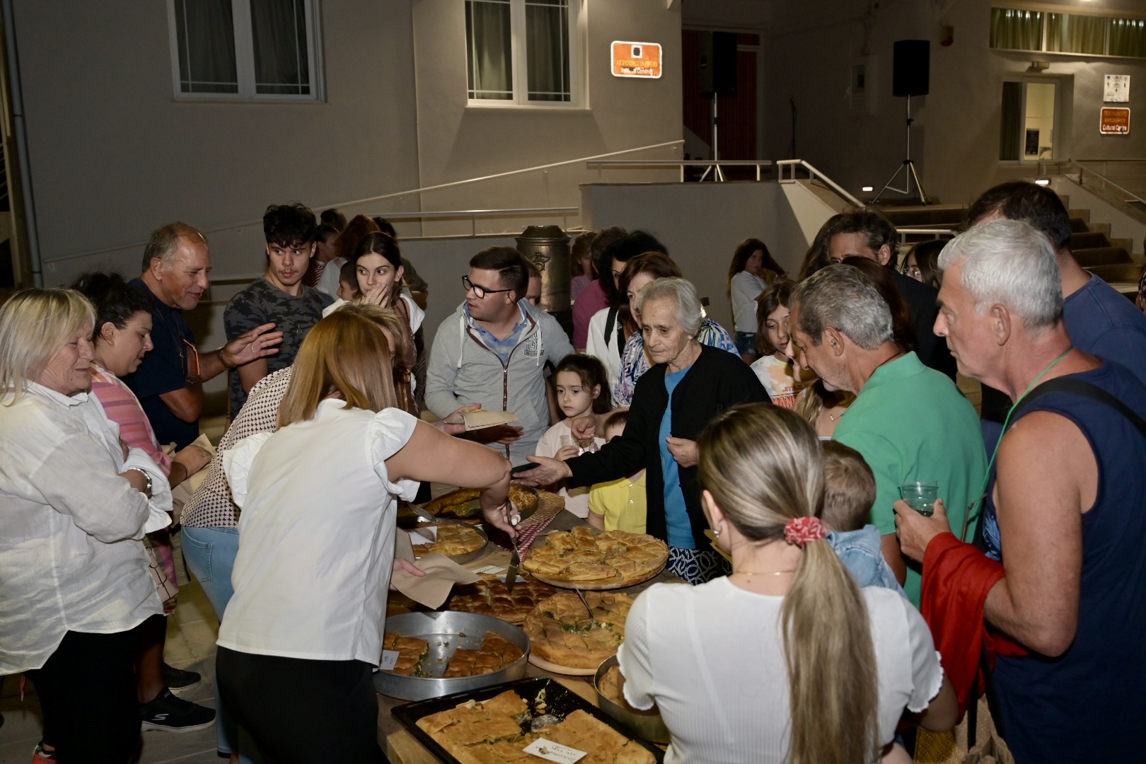 Το κοινό παρακολούθησε με μεγάλο ενδιαφέρον το μάθημα μαγειρικής, συμμετείχε ενεργά, ενώ στο τέλος οι φρεσκοψημένες πίτες μοιράστηκαν ως κέρασμα, δημιουργώντας μια ζεστή ατμόσφαιρα γιορτής.