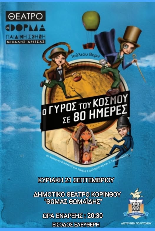 Το θέατρο είναι τροφή για το πνεύμα κάθε ανθρώπου. Αλλά ειδικά για τα παιδιά αναπτύσσει στην ψυχή τους την ενσυναίσθηση, την κριτική σκέψη, την πνευματική καλλιέργεια. Οπότε μην χάσετε την ευκαιρία να φέρετε τα παιδιά σας ΔΩΡΕΑΝ, απόψε (ΚΥΡΙΑΚΗ) το βράδυ (8.30 μμ στο Δημοτικό Θέατρο Θωμάς Θωμαΐδης) σε μία ακόμα υπέροχη παιδική θεατρική παράσταση, "Τον γύρο του κόσμου σε 80 ημέρες", από την δημιουργική ομάδα του ΘΕΑΤΡΟ ΣΕ ΦΟΡΜΑ.