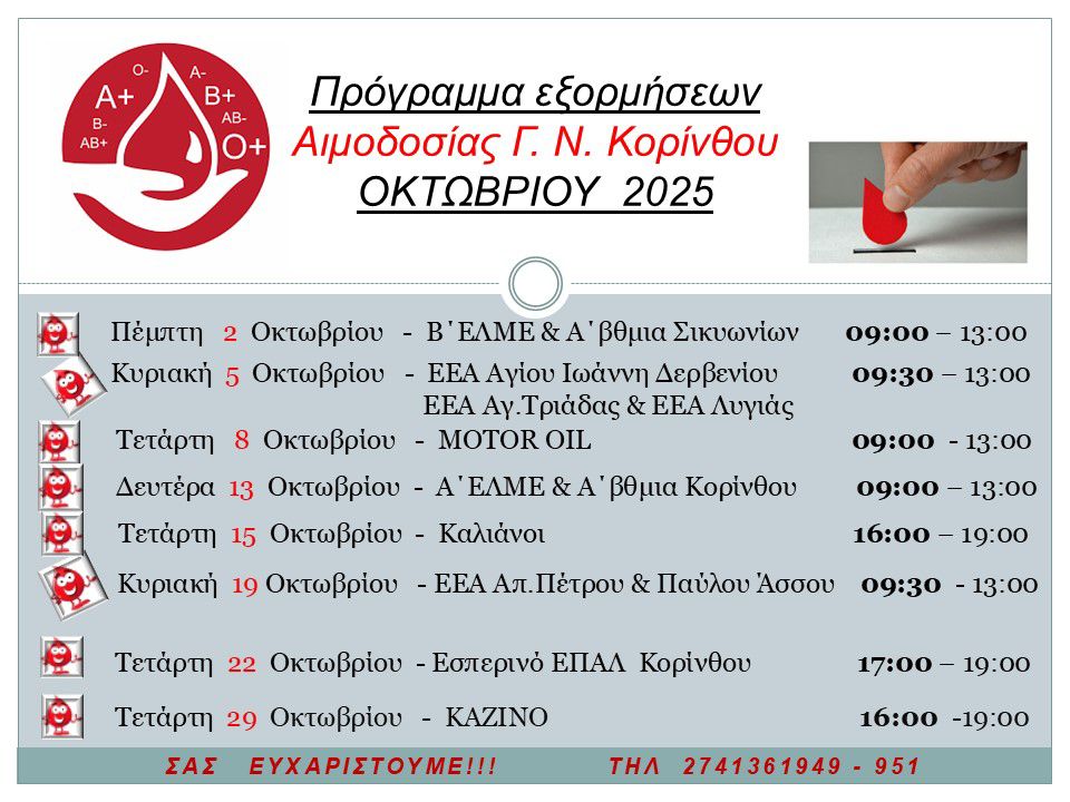 ΚΟΡΙΝΘΙΑΚΑ ΚΟΡΙΝΘΙΑ ΔΗΜΟΣ ΚΟΡΙΝΘΙΩΝ ΕΘΕΛΟΝΤΙΚΕΣ ΑΙΜΟΔΟΣΙΕΣ ΠΡΟΓΡΑΜΜΑ Κόρινθος: Πρόγραμμα αιμοδοσιών για τον Οκτώβριο ημερομηνίες και περιοχές 05/10/2025 @ 17:00 Copied to clipboard Διαβάστε επίσης 01/11/2025 @ 16:00 Διακοπές ηλεκτροδότησης σε Αρχαία Κόρινθο, Μάτι, Στενό, Φενεό, Μοσιά, Αρχαία Φενεό, Ζευγολατιό, Κάτω Άσσο και Λέχαιο 01/11/2025 @ 14:23 Π.ΠΙΤΣΑΚΗΣ: Υποχρέωση και μονόδρομος η Εισαγγελία (ηχητικό) 01/11/2025 @ 14:00 Ξυλόκαστρο: Συνεδριάζει η Δημοτική Επιτροπή την Τετάρτη 5 Νοεμβρίου 01/11/2025 @ 13:45 ΕΠΙΜΕΛΗΤΗΡΙΟ-ΘΑΝΑΣΗΣ ΔΟΥΡΟΣ: Ζητήσαμε πλήρη ενημέρωση για τα 136.000 ευρώ (ηχητικό) 01/11/2025 @ 12:38 ΕΠΙΜΕΛΗΤΗΡΙΟ ΚΟΡΙΝΘΙΑΣ: Kαμπάνια για το κρασί χωρίς να το γνωρίζουν οι οινοποιοί! Ο Οκτώβρης τρέχει κι εμείς ως Αιμοδοσία Κορίνθου σε όλες τις πόλεις και τα χωριά.Σας περιμένουμε!ΠΡΟΣΟΧΗ! Μην ξεχάσετε το υπέροχο χαμόγελο σας! Ροή ειδήσεων 01/11/2025 @ 16:00 Διακοπές ηλεκτροδότησης σε Αρχαία Κόρινθο, Μάτι, Στενό, Φενεό, Μοσιά, Αρχαία Φενεό, Ζευγολατιό, Κάτω Άσσο και Λέχαιο 01/11/2025 @ 15:00 Π.Τατούλης: Αδιανόητο το ΤΕΕ να έχει μετατραπεί σε εθνικό εργολάβο! 01/11/2025 @ 14:23 Π.ΠΙΤΣΑΚΗΣ: Υποχρέωση και μονόδρομος η Εισαγγελία (ηχητικό) 01/11/2025 @ 14:14 Τουλάχιστον 3 νεκροί από τη βεντέτα στα Βορίζια Ηρακλείου - Συνεχίζονται οι πυροβολισμοί σε φαράγγι, έπεσαν πάνω από 2.000 σφαίρες 01/11/2025 @ 14:00 Ξυλόκαστρο: Συνεδριάζει η Δημοτική Επιτροπή την Τετάρτη 5 Νοεμβρίου 01/11/2025 @ 13:45 ΕΠΙΜΕΛΗΤΗΡΙΟ-ΘΑΝΑΣΗΣ ΔΟΥΡΟΣ: Ζητήσαμε πλήρη ενημέρωση για τα 136.000 ευρώ (ηχητικό) 01/11/2025 @ 13:00 Προσωρινές κυκλοφοριακές ρυθμίσεις λόγω διεξαγωγής της εκδήλωσης αγώνα «5η Ανάβαση Τσακώνας 2025» 01/11/2025 @ 12:45 ΕΠΙΜΕΛΗΤΗΡΙΟ ΚΟΡΙΝΘΙΑΣ: Kαμπάνια για το κρασί χωρίς να το γνωρίζουν οι οινοποιοί! 01/11/2025 @ 12:38 ΕΠΙΜΕΛΗΤΗΡΙΟ ΚΟΡΙΝΘΙΑΣ: Kαμπάνια για το κρασί χωρίς να το γνωρίζουν οι οινοποιοί! 01/11/2025 @ 12:30 Νέα πυροσβεστικά οχήματα και στήριξη στους εθελοντές από τον Δήμο Κορινθίων 01/11/2025 @ 12:15 Πρόσκληση σε διαδικτυακή ενημερωτική εκδήλωση για το Γενικό Εμπορικό Μητρώο (ΓΕΜΗ) 01/11/2025 @ 11:49 Ομιλία από τον Γεώργιο Καλλιακμάνη στο Πνευματικό Κέντρο Αγίου Βασιλείου στο Λυγουριό, με θέμα “Παραβατικότητα ανηλίκων” 01/11/2025 @ 11:27 Το Κίνημα Δημοκρατίας ενάντια στο κύμα κλεισίματος των ΕΛΤΑ στην Κορινθία 01/11/2025 @ 11:26 Boυλή: Διαβιβάστηκε νέα ποινική δικογραφία για τα Τέμπη 01/11/2025 @ 11:20 Το αδύνατο που έγινε πράξη: Πώς ο Δήμος Βέλου-Βόχας νίκησε τη λειψυδρία 01/11/2025 @ 10:53 Κυκλοφοριακές ρυθμίσεις σε Μεγάρα–Λουτράκι λόγω του UCI Gran Fondo 01/11/2025 @ 10:53 Για το Δημοτικό Συμβούλιο Κιάτου. 01/11/2025 @ 10:50 ΕΠΙΜΕΛΗΤΗΡΙΟ: Ερωτήματα για τη σύμβαση των 136.000 ευρώ – Νέα στοιχεία, νέα σκιά 01/11/2025 @ 09:51 Η αναγέννηση της αρχαίας Κορίνθου: Αυτό είναι το masterplan που θα αλλάξει την περιοχή(ΦΩΤΟ) 01/11/2025 @ 09:20 ΚΟΡΙΝΘΟΣ: Αυτές είναι οι ομάδες των ΚΑΠΗ Δείτε επίσης 01/11/2025 @ 14:14 Τουλάχιστον 3 νεκροί από τη βεντέτα στα Βορίζια Ηρακλείου - Συνεχίζονται οι πυροβολισμοί σε φαράγγι, έπεσαν πάνω από 2.000 σφαίρες 01/11/2025 @ 12:45 ΕΠΙΜΕΛΗΤΗΡΙΟ ΚΟΡΙΝΘΙΑΣ: Kαμπάνια για το κρασί χωρίς να το γνωρίζουν οι οινοποιοί! 01/11/2025 @ 11:27 Το Κίνημα Δημοκρατίας ενάντια στο κύμα κλεισίματος των ΕΛΤΑ στην Κορινθία 01/11/2025 @ 11:20 Το αδύνατο που έγινε πράξη: Πώς ο Δήμος Βέλου-Βόχας νίκησε τη λειψυδρία 01/11/2025 @ 10:53 Για το Δημοτικό Συμβούλιο Κιάτου. 01/11/2025 @ 09:51 Η αναγέννηση της αρχαίας Κορίνθου: Αυτό είναι το masterplan που θα αλλάξει την περιοχή(ΦΩΤΟ) 01/11/2025 @ 09:20 ΚΟΡΙΝΘΟΣ: Αυτές είναι οι ομάδες των ΚΑΠΗ 01/11/2025 @ 09:10 Ανακοίνωση ΕΛΤΑ: Κανένας Έλληνας δεν θα μείνει χωρίς ταχυδρόμο και κανένα νησί χωρίς κατάστημα