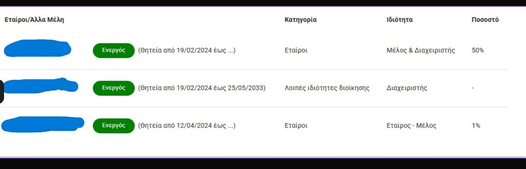 Μέλος της εταιρείας επίσης, φέρεται να είναι η σύζυγος του μέλους του Διοικητικού Συμβουλίου του Επιμελητηρίου Κορινθίας., με ποσοστό 1%.
