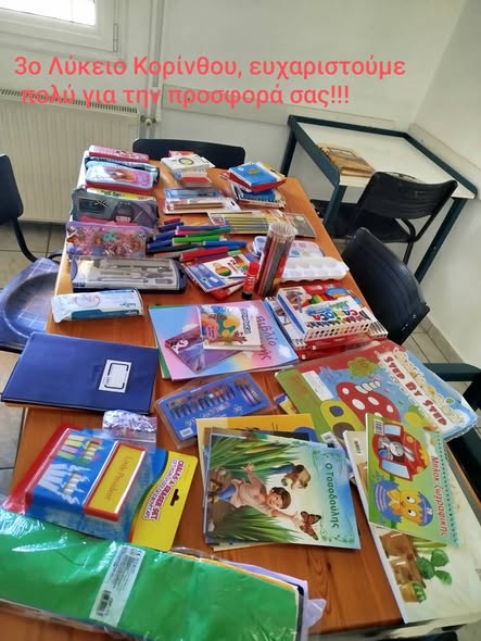 Οι μαθητές και οι μαθήτριες του 3ου Λυκείου Κορίνθου ανταποκρίθηκαν με ιδιαίτερο ενθουσιασμό και κοινωνική ευαισθησία στην πρόσκληση του Ευθύμειου Κέντρου, συγκεντρώνοντας και προσφέροντας υλικά που θα αξιοποιηθούν δημιουργικά στις καλλιτεχνικές δραστηριότητες των παιδιών.