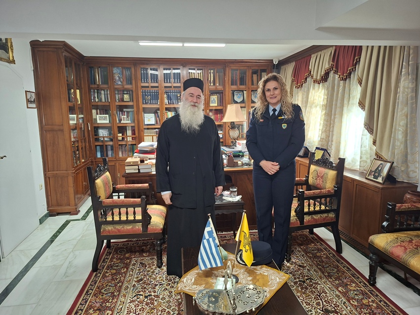Ακολούθως, τον Σεβασμιώτατο επισκέφθηκε η Διοικητής του Αστυνομικού Τμήματος Λουτρακίου-Περαχώρας Αστυνόμος Α’ κ. Μάρθα Μυστακίδου ανταλλάσσοντας απόψεις και σκέψεις για υπηρεσιακά, κοινωνικά και φιλανθρωπικά ζητήματα, ως και για τις διαχρονικές θερμές σχέσεις της τοπικής μας Εκκλησίας με την Αστυνομία.