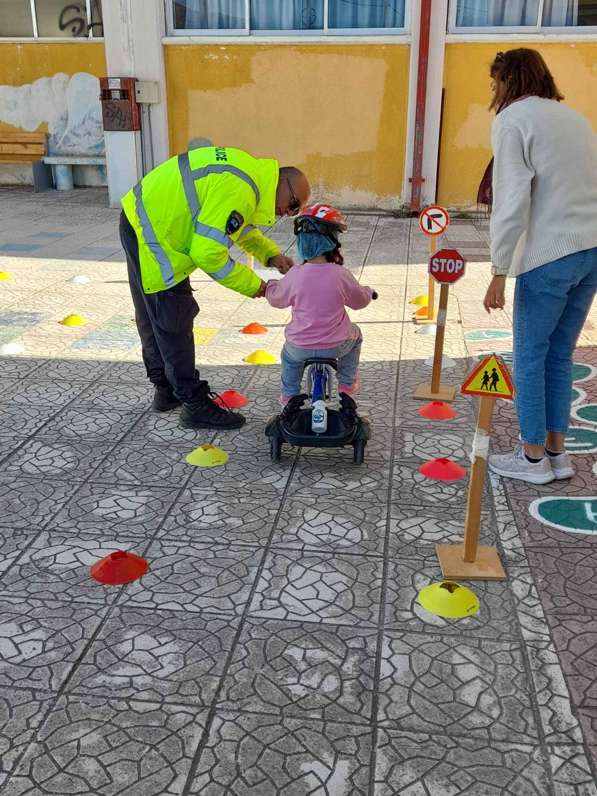Οι μικροί μαθητές και μαθήτριες είχαν την ευκαιρία να γνωρίσουν με βιωματικό και διαδραστικό τρόπο τους βασικούς κανόνες κυκλοφοριακής αγωγής, να μάθουν πώς μετακινούνται με ασφάλεια ως πεζοί, ως επιβάτες σε αυτοκίνητο, αλλά και πώς αναγνωρίζουμε τα σημαντικά σήματα του Κ.Ο.Κ.