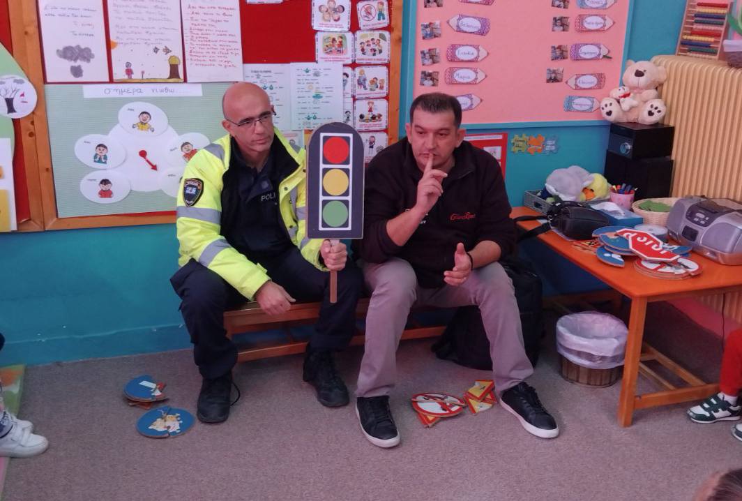 Ιδιαίτερα ξεχωριστή ήταν η συμμετοχή του Αρχιφύλακα κ. Αλεξάνδρου Βαμβακίδη, ο οποίος παρουσίασε στα παιδιά τον ρόλο της Ελληνικής Αστυνομίας στην οδική ασφάλεια, απαντώντας σε ερωτήσεις και δείχνοντας εξοπλισμό της υπηρεσίας.