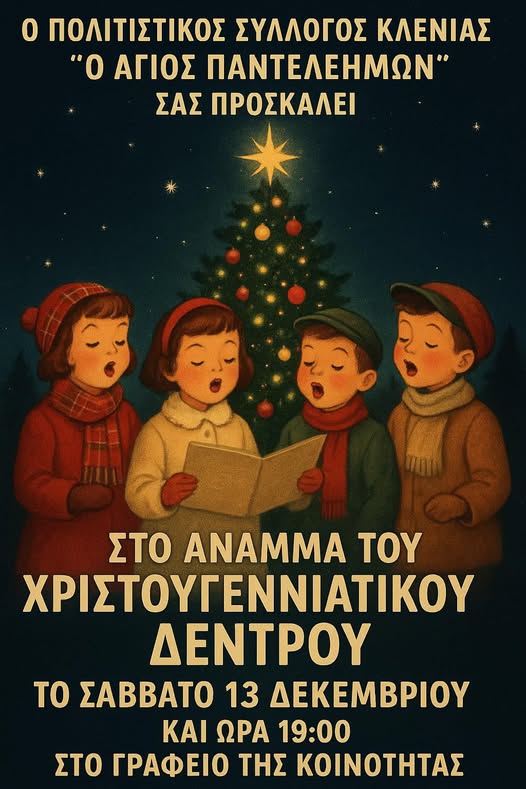05/12/2025 @ 14:53 Στις 13 Δεκεμβρίου το άναμμα του Χριστουγεννιάτικου Δέντρου της Κοινότητας Κλένιας