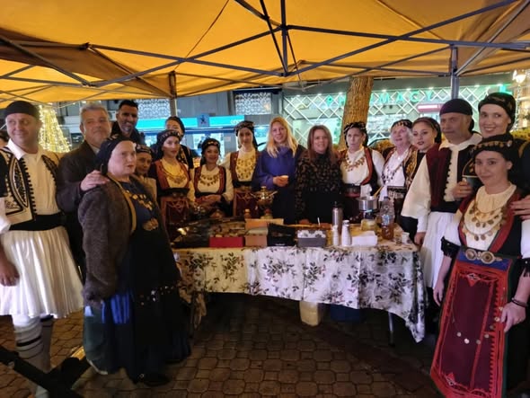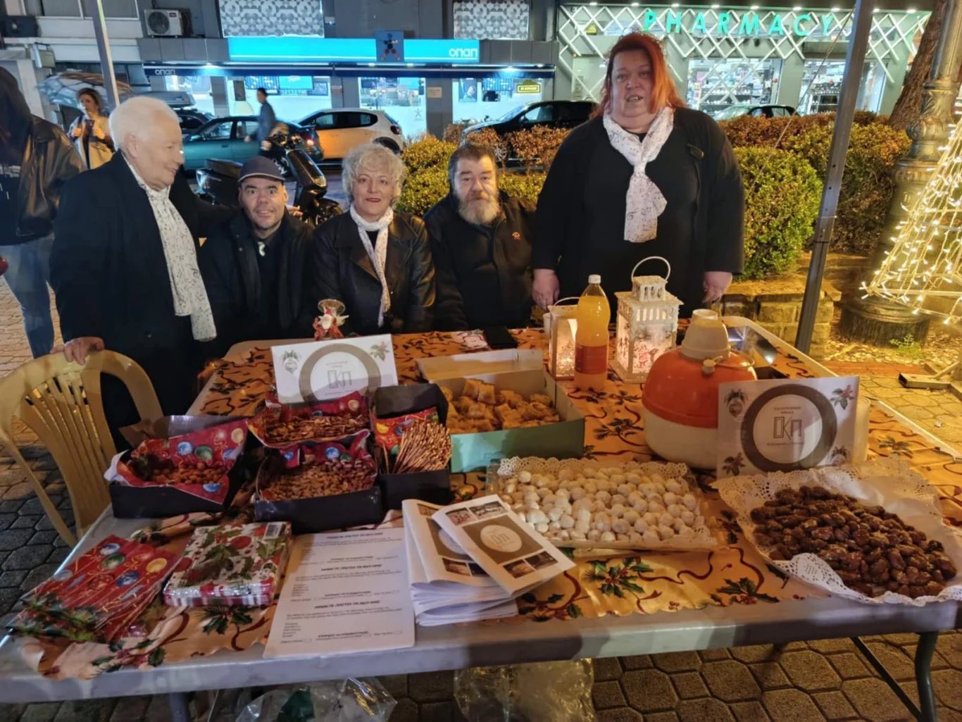 Σε ένα εορταστικό σκηνικό γεμάτο φως και χρώμα, οι πολιτιστικοί σύλλογοι πρόσφεραν παραδοσιακά κεράσματα στους παρευρισκόμενους, μοιράζοντας γεύσεις και αρώματα που θύμισαν οικογενειακή θαλπωρή και χριστουγεννιάτικη παράδοση.